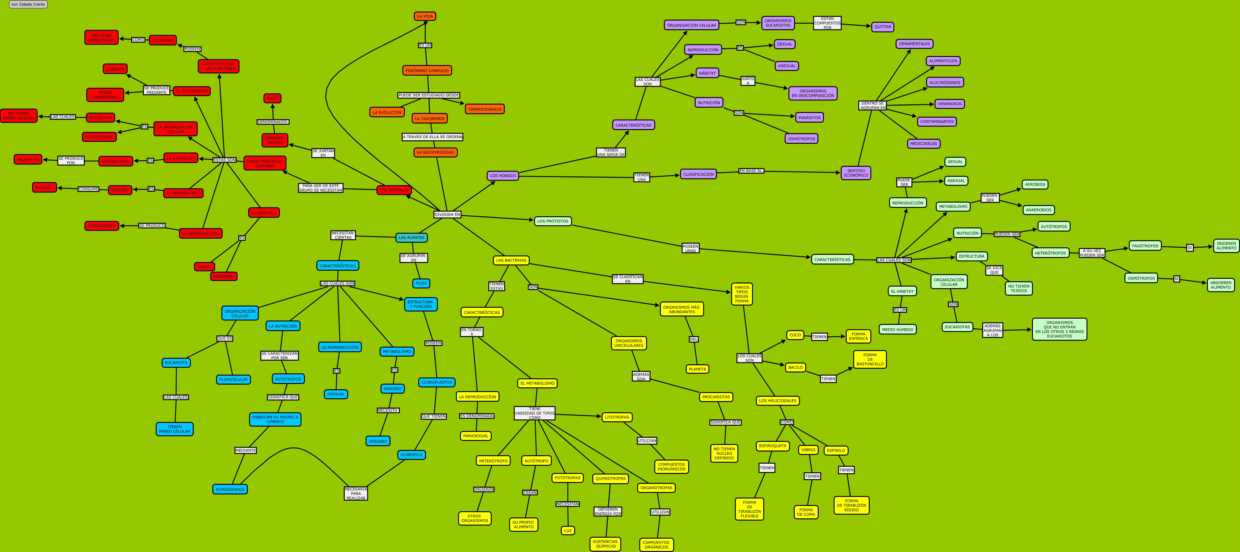 Este Cmap, tiene información relacionada con: Zabala Iriarte Jon, LA VIDA ES UN FENÓMENO COMPLEJO, ORGANIZACIÓN CELULAR QUE ES EUCARIOTA, FENÓMENO COMPLEJO PUEDE SER ESTUDIADO DESDE LA EVOLUCIÓN, LOS PROTISTOS POSEÉN UNAS CARACTERÍSTICAS, LOS ANIMALES SE JUNTAN EN GRANDES GRUPOS, EUCARIOTAS ADEMÁS AGRUPAN A LOS ORGANISMOS QUE NO ENTRAN EN LOS OTROS 3 REINOS EUCARIOTOS, ESPIRILO TIENEN FORMA DE TIRABUZÓN RÍGIDO, METABOLISMO PUEDEN SER AEROBIOS, LA REPRODUCCÍON ES DENOMINADA PARASEXUAL, CARACTERÍSTICAS LAS CUALES SON REPRODUCCIÓN, CLOROPLASTOS QUE TIENEN CLOROFILA, VARIOS TIPOS SEGÚN FORMA LOS CUALES SON BACILO, REPRODUCCIÓN PUEDE SER ASEXUAL, EL METABOLISMO TIENE VARIEDAD DE TIPOS COMO ORGANOTROFAS, AEROBIO NECESITA OXÍGENO, AUTÓTROFO CREAN SU PROPIO ALIMENTO, ORGANIZACIÓN CELULAR QUE ES PLURICELULAR, CARACTERÍSTICAS LAS CUALES SON METABOLISMO, LA SIMETRÍA ES RADIAL, SENTIDO ECONÓMICO DENTRO SE AGRUPAN EN ALUCINÓGENOS