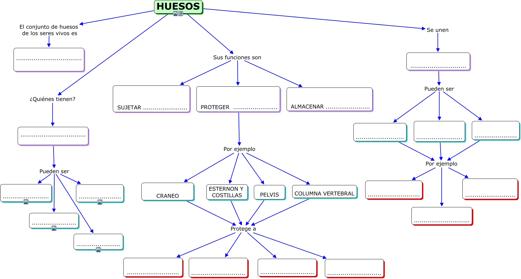 Este Cmap, tiene información relacionada con: HUESOS, ESTERNON Y COSTILLAS Protege a ............................, ........................ Por ejemplo ............................., ......................... Por ejemplo ..........................., HUESOS Sus funciones son SUJETAR ......................., ............................. Pueden ser ........................., PROTEGER ....................... Por ejemplo CRANEO, HUESOS Sus funciones son PROTEGER ......................., ......................... Por ejemplo .........................., ESTERNON Y COSTILLAS Protege a ............................, COLUMNA VERTEBRAL Protege a ............................, ...................... Por ejemplo ............................., PROTEGER ....................... Por ejemplo ESTERNON Y COSTILLAS, COLUMNA VERTEBRAL Protege a ..........................., PROTEGER ....................... Por ejemplo COLUMNA VERTEBRAL, COLUMNA VERTEBRAL Protege a ............................, CRANEO Protege a ............................, HUESOS El conjunto de huesos de los seres vivos es .................................., ............................. Pueden ser ........................, .................................. Pueden ser ........................, CRANEO Protege a ............................