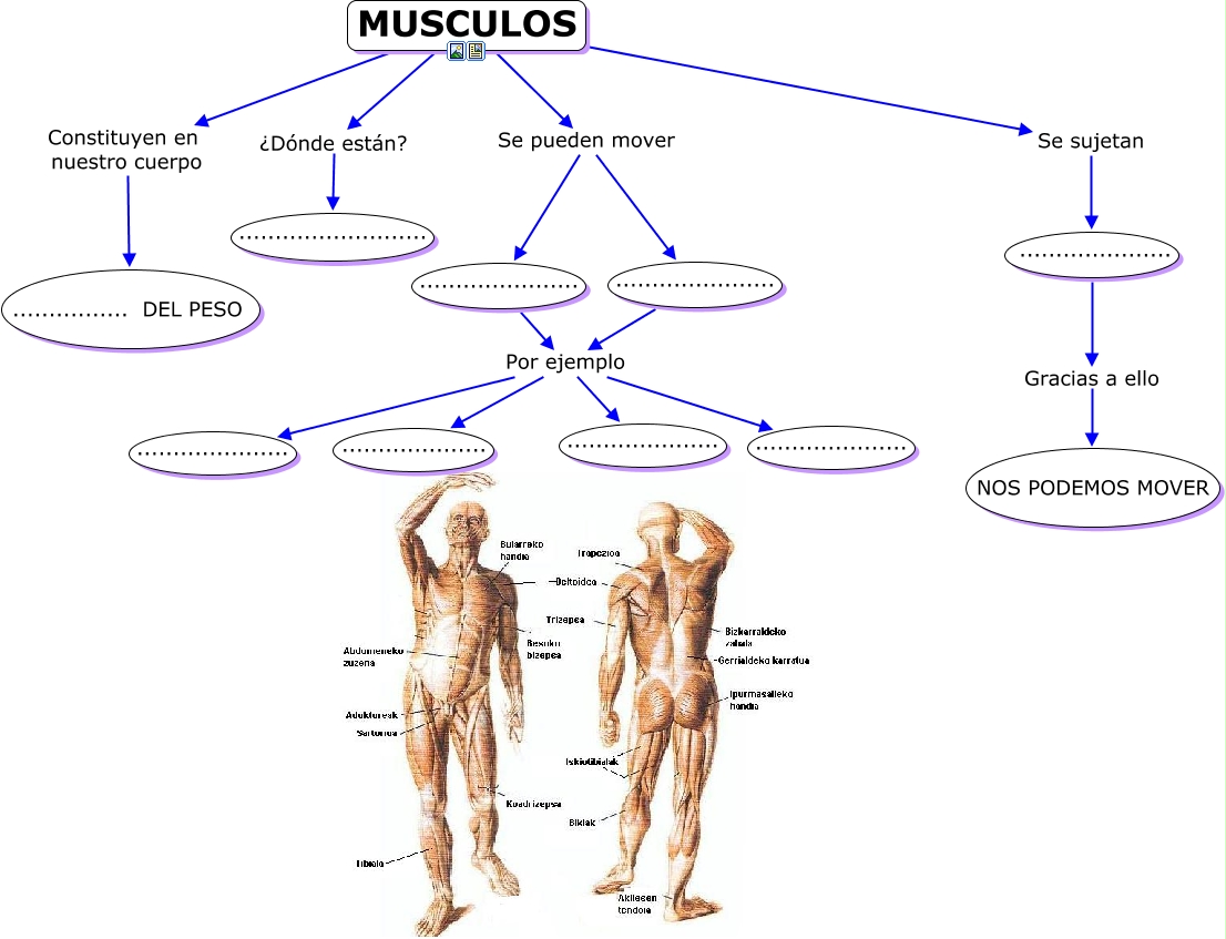Este Cmap, tiene información relacionada con: MUSCULOS, ..................... Gracias a ello NOS PODEMOS MOVER, MUSCULOS Se sujetan ....................., ...................... Por ejemplo ...................., ...................... Por ejemplo ....................., ...................... Por ejemplo ...................., ...................... Por ejemplo ....................., ...................... Por ejemplo ....................., MUSCULOS Se pueden mover ......................, MUSCULOS ¿Dónde están? .........................., ...................... Por ejemplo ....................., ...................... Por ejemplo ....................., MUSCULOS Se pueden mover ......................, MUSCULOS Constituyen en nuestro cuerpo ................ DEL PESO, ...................... Por ejemplo .....................