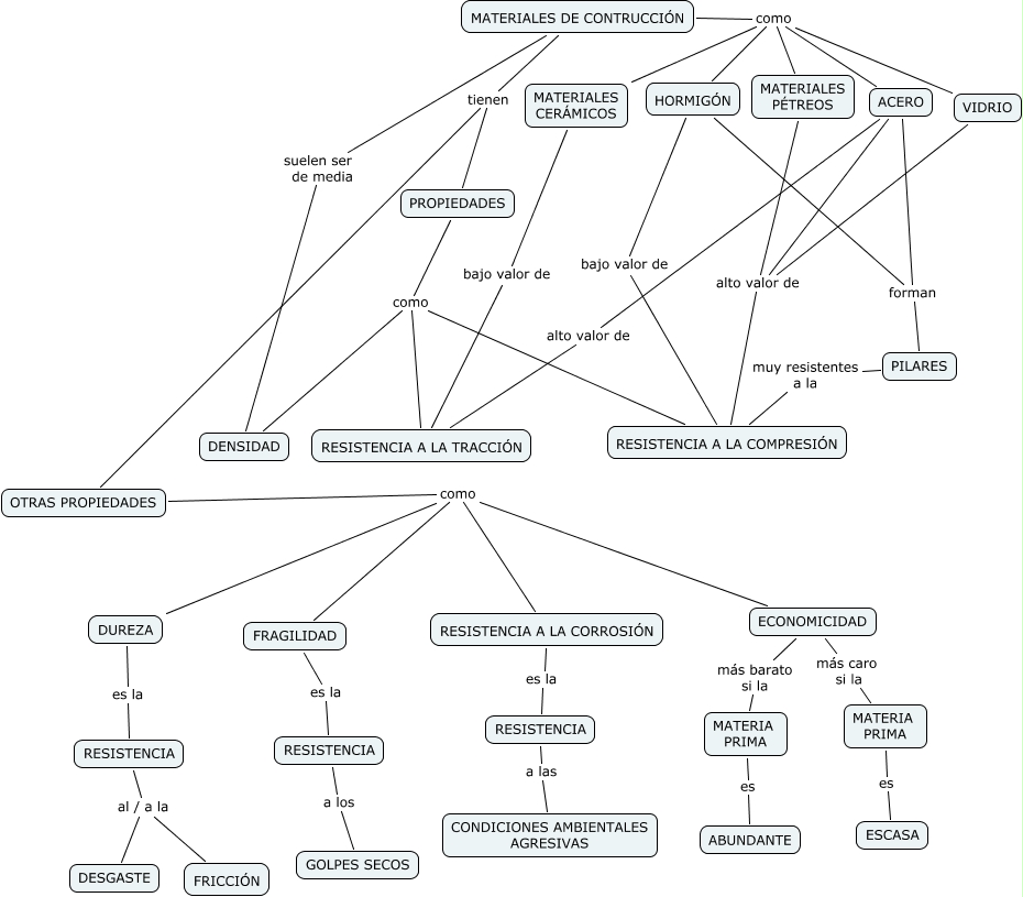 Este Cmap, tiene información relacionada con: propiedades_materiales_alejandro, VIDRIO alto valor de RESISTENCIA A LA COMPRESIÓN, PILARES muy resistentes a la RESISTENCIA A LA COMPRESIÓN, HORMIGÓN bajo valor de RESISTENCIA A LA COMPRESIÓN, HORMIGÓN forman PILARES, RESISTENCIA al / a la FRICCIÓN, MATERIALES DE CONTRUCCIÓN suelen ser de media DENSIDAD, OTRAS PROPIEDADES como ECONOMICIDAD, ACERO alto valor de RESISTENCIA A LA TRACCIÓN, OTRAS PROPIEDADES como FRAGILIDAD, MATERIALES DE CONTRUCCIÓN como VIDRIO, RESISTENCIA al / a la DESGASTE, OTRAS PROPIEDADES como RESISTENCIA A LA CORROSIÓN, MATERIALES DE CONTRUCCIÓN como HORMIGÓN, MATERIALES PÉTREOS alto valor de RESISTENCIA A LA COMPRESIÓN, MATERIALES DE CONTRUCCIÓN como MATERIALES CERÁMICOS, MATERIA PRIMA es ESCASA, MATERIALES DE CONTRUCCIÓN como MATERIALES PÉTREOS, MATERIALES DE CONTRUCCIÓN como ACERO, OTRAS PROPIEDADES como DUREZA, PROPIEDADES como RESISTENCIA A LA COMPRESIÓN