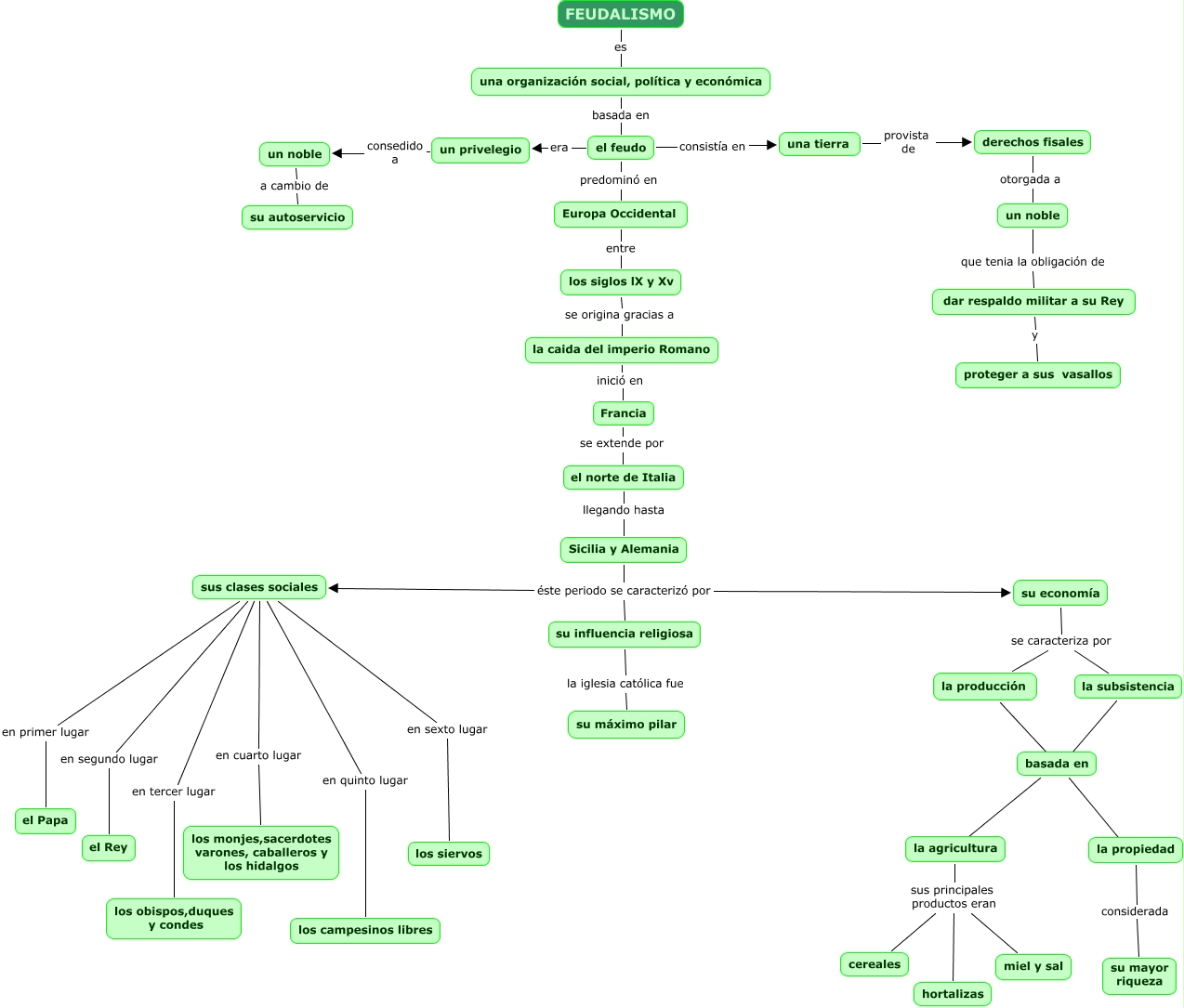 Este Cmap, tiene información relacionada con: GISSELLYPATIÑOMEDINA, su economía se caracteriza por la producción, los siglos lX y Xv se origina gracias a la caida del imperio Romano, Sicilia y Alemania éste periodo se caracterizó por su influencia religiosa, basada en ???? la propiedad, sus clases sociales en quinto lugar los campesinos libres, el feudo era un privelegio, sus clases sociales en cuarto lugar los monjes,sacerdotes varones, caballeros y los hidalgos, la caida del imperio Romano inició en Francia, un noble que tenia la obligación de dar respaldo militar a su Rey, su influencia religiosa la iglesia católica fue su máximo pilar, FEUDALISMO es una organización social, política y económica, basada en ???? la agricultura, el norte de Italia llegando hasta Sicilia y Alemania, la agricultura sus principales productos eran cereales, derechos fisales otorgada a un noble, el feudo consistía en una tierra, Sicilia y Alemania éste periodo se caracterizó por su economía, sus clases sociales en primer lugar el Papa, sus clases sociales en tercer lugar los obispos,duques y condes, la producción ???? basada en