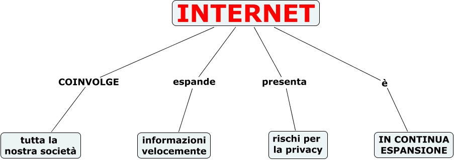 Questa Cmap, creata con IHMC CmapTools, contiene informazioni relative a: RELAZIONE_INTERNET_Zanzottera, INTERNET espande informazioni velocemente, INTERNET presenta rischi per la privacy, INTERNET è IN CONTINUA ESPANSIONE, INTERNET COINVOLGE tutta la nostra società