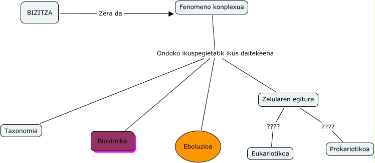 Este Cmap, tiene información relacionada con: Nerea Olano, Fenomeno konplexua Ondoko ikuspegietatik ikus daitekeena Zelularen egitura, BIZITZA Zera da Fenomeno konplexua, Fenomeno konplexua Ondoko ikuspegietatik ikus daitekeena Biokimika, Zelularen egitura ???? Prokariotikoa, Fenomeno konplexua Ondoko ikuspegietatik ikus daitekeena Taxonomia, Fenomeno konplexua Ondoko ikuspegietatik ikus daitekeena Eboluzioa, Zelularen egitura ???? Eukariotikoa