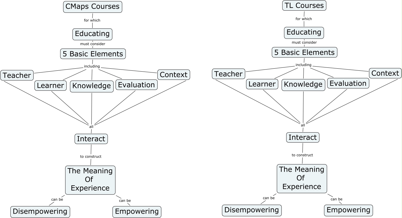 This Concept Map, created with IHMC CmapTools, has information related to: z.Novak Template copy, The Meaning Of Experience can be Disempowering, Knowledge all Interact, Knowledge all Evaluation, 5 Basic Elements including Evaluation, Interact to construct The Meaning Of Experience, Educating must consider 5 Basic Elements, The Meaning Of Experience can be Empowering, CMaps Courses for which Educating, Knowledge all Learner, Interact to construct The Meaning Of Experience, 5 Basic Elements including Context, Knowledge all Teacher, 5 Basic Elements including Learner, Knowledge all Interact, 5 Basic Elements including Context, Knowledge all Context, Knowledge all Learner, Educating must consider 5 Basic Elements, 5 Basic Elements including Evaluation, 5 Basic Elements including Learner