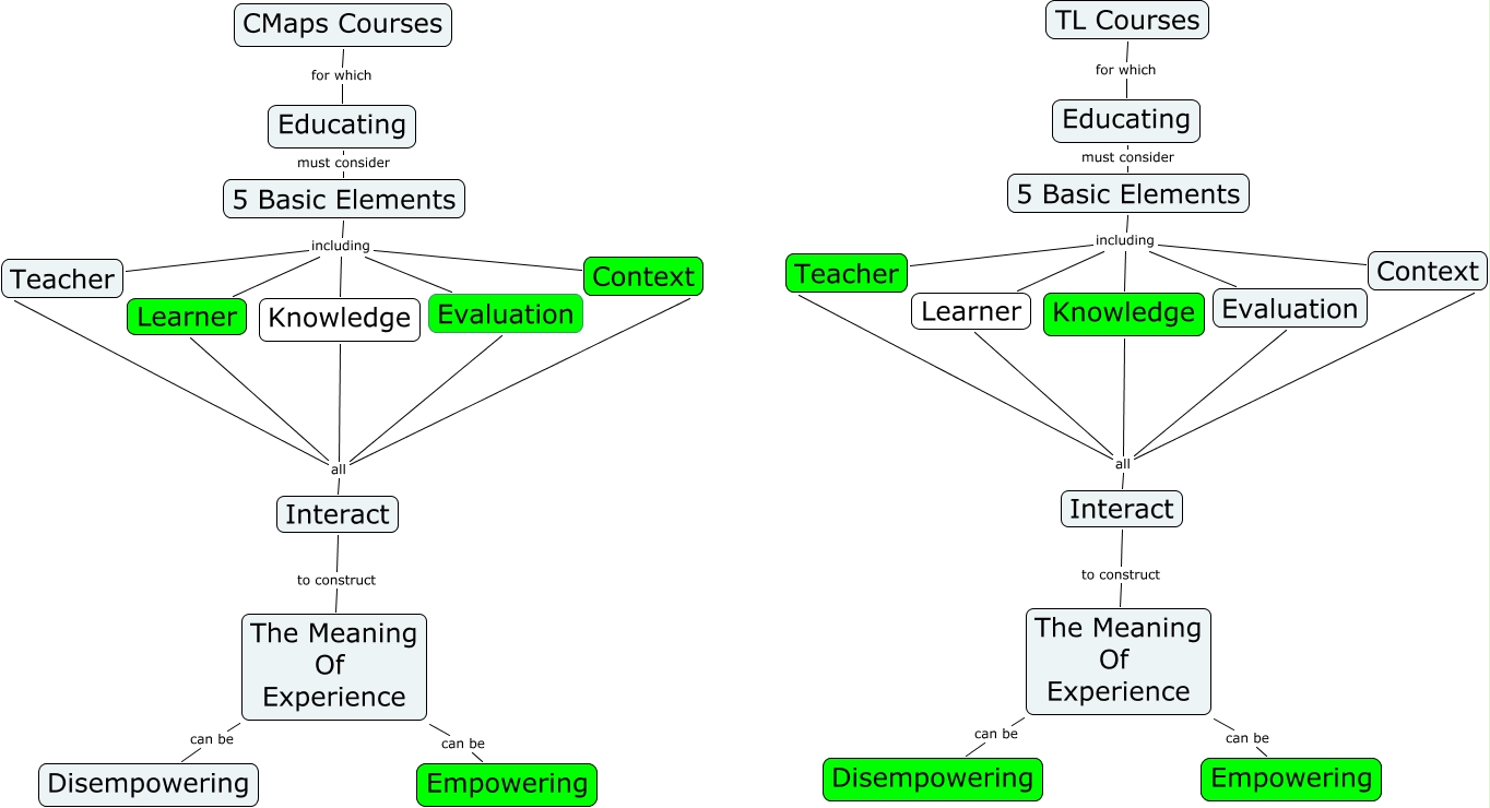 This Concept Map, created with IHMC CmapTools, has information related to: Alyssa Hamm CMap vs TL survey, The Meaning Of Experience can be Disempowering, Knowledge all Interact, Knowledge all Evaluation, 5 Basic Elements including Evaluation, Interact to construct The Meaning Of Experience, Educating must consider 5 Basic Elements, The Meaning Of Experience can be Empowering, CMaps Courses for which Educating, Knowledge all Learner, Interact to construct The Meaning Of Experience, 5 Basic Elements including Context, Knowledge all Teacher, 5 Basic Elements including Learner, Knowledge all Interact, 5 Basic Elements including Context, Knowledge all Context, Knowledge all Learner, Educating must consider 5 Basic Elements, 5 Basic Elements including Evaluation, 5 Basic Elements including Learner