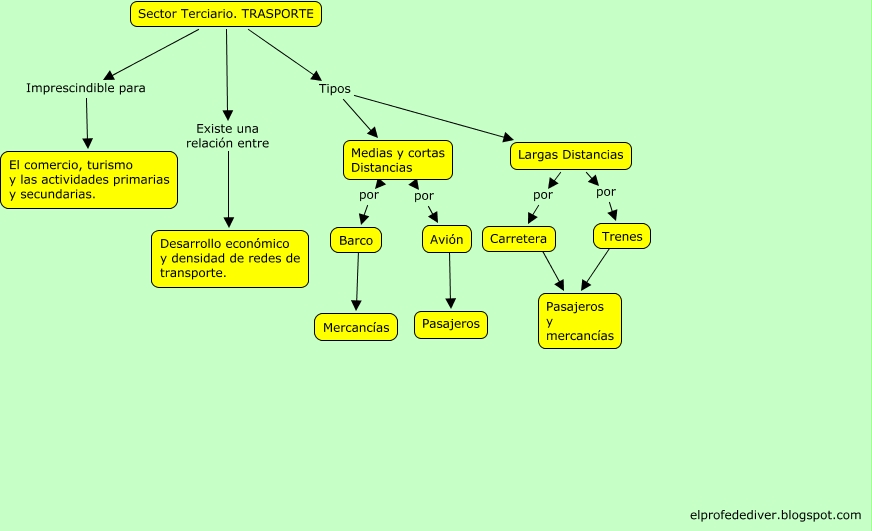 Este Cmap, tiene información relacionada con: transporte, Carretera ???? Pasajeros y mercancías, Sector Terciario. TRASPORTE Tipos Medias y cortas Distancias, Trenes ???? Pasajeros y mercancías, Largas Distancias por Trenes, Avión ???? Pasajeros, Medias y cortas Distancias por Barco, Barco ???? Mercancías, Largas Distancias por Carretera, Sector Terciario. TRASPORTE Tipos Largas Distancias, Sector Terciario. TRASPORTE Existe una relación entre Desarrollo económico y densidad de redes de transporte., Sector Terciario. TRASPORTE Imprescindible para El comercio, turismo y las actividades primarias y secundarias., Medias y cortas Distancias por Avión