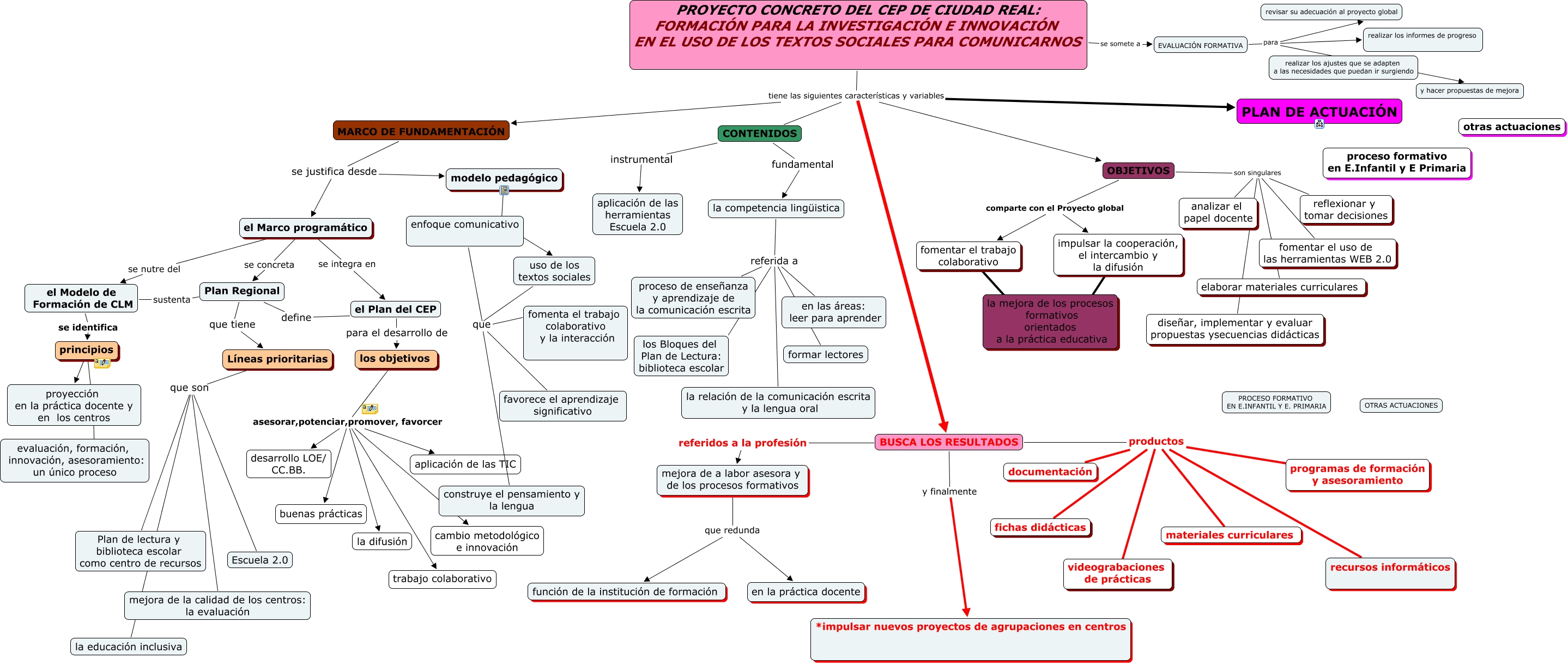 Este Cmap, tiene información relacionada con: 3.3.presentacion_completa_proyecto_singular_cepCReal, Plan Regional define el Plan del CEP, OBJETIVOS comparte con el Proyecto global impulsar la cooperación, el intercambio y la difusión, fomentar el trabajo colaborativo ???? la mejora de los procesos formativos orientados a la práctica educativa, BUSCA LOS RESULTADOS referidos a la profesión mejora de a labor asesora y de los procesos formativos, Líneas prioritarias que son mejora de la calidad de los centros: la evaluación, BUSCA LOS RESULTADOS y finalmente *impulsar nuevos proyectos de agrupaciones en centros, los objetivos asesorar,potenciar,promover, favorcer buenas prácticas, PROYECTO CONCRETO DEL CEP DE CIUDAD REAL: FORMACIÓN PARA LA INVESTIGACIÓN E INNOVACIÓN EN EL USO DE LOS TEXTOS SOCIALES PARA COMUNICARNOS tiene las siguientes características y variables PLAN DE ACTUACIÓN, MARCO DE FUNDAMENTACIÓN se justifica desde modelo pedagógico, Líneas prioritarias que son la educación inclusiva, enfoque comunicativo que favorece el aprendizaje significativo, la competencia lingüistica referida a formar lectores, PROYECTO CONCRETO DEL CEP DE CIUDAD REAL: FORMACIÓN PARA LA INVESTIGACIÓN E INNOVACIÓN EN EL USO DE LOS TEXTOS SOCIALES PARA COMUNICARNOS tiene las siguientes características y variables BUSCA LOS RESULTADOS, el Modelo de Formación de CLM se identifica principios, EVALUACIÓN FORMATIVA para y hacer propuestas de mejora, Líneas prioritarias que son Escuela 2.0, el Plan del CEP para el desarrollo de los objetivos, BUSCA LOS RESULTADOS productos videograbaciones de prácticas, OBJETIVOS son singulares reflexionar y tomar decisiones, modelo pedagógico se basa enfoque comunicativo