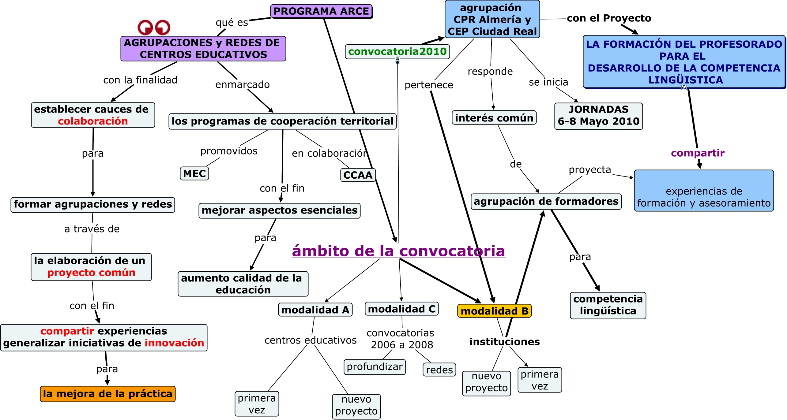 Este Cmap, tiene información relacionada con: 1-presentacion_programa_arce, los programas de cooperación territorial promovidos MEC, los programas de cooperación territorial en colaboración CCAA, modalidad A centros educativos nuevo proyecto, modalidad B instituciones nuevo proyecto, agrupación CPR Almería y CEP Ciudad Real con el Proyecto LA FORMACIÓN DEL PROFESORADO PARA EL DESARROLLO DE LA COMPETENCIA LINGÜISTICA, LA FORMACIÓN DEL PROFESORADO PARA EL DESARROLLO DE LA COMPETENCIA LINGÜISTICA compartir experiencias de formación y asesoramiento, agrupación CPR Almería y CEP Ciudad Real responde interés común, interés común de agrupación de formadores, modalidad C convocatorias 2006 a 2008 redes, PROGRAMA ARCE ámbito de la convocatoria modalidad B, agrupación CPR Almería y CEP Ciudad Real pertenece modalidad B, PROGRAMA ARCE ámbito de la convocatoria modalidad A, agrupación CPR Almería y CEP Ciudad Real se inicia JORNADAS 6-8 Mayo 2010, la elaboración de un proyecto común con el fin compartir experiencias generalizar iniciativas de innovación, agrupación de formadores para competencia lingüística, modalidad C convocatorias 2006 a 2008 profundizar, modalidad B instituciones primera vez, PROGRAMA ARCE ámbito de la convocatoria convocatoria2010, modalidad B instituciones agrupación de formadores, PROGRAMA ARCE qué es AGRUPACIONES y REDES DE CENTROS EDUCATIVOS