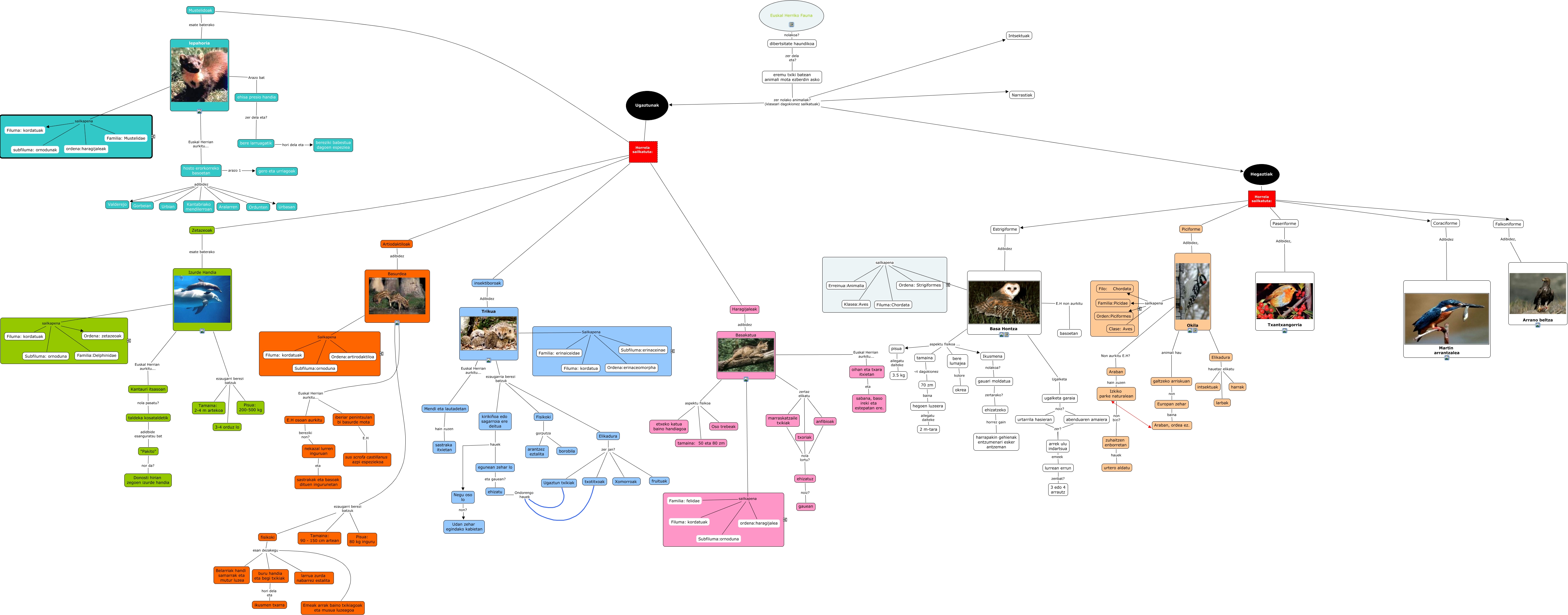 Este Cmap, tiene información relacionada con: Sin Título 1, fisikoki esan dezakegu Belarriak handi samarrak eta mutur luzea, lepahoria sailkapena ordena:haragijaleak, Mendi eta lautadetan hain zuzen sastraka itxietan, Trikua ezaugarria berezi batzuk Elikadura, hosto erorkorreko basoetan adibidez Kantabriako mendilerroan, Ikusmena nolakoa? gauari moldatua, Basakatua sailkapena Filuma: kordatuak, Hegaztiak Horrela sailkatuta: Piciforme, eremu txiki batean animali mota ezberdin asko zer nolako animaliak? (klaseari dagokionez sailkatuak) Narrastiak, Hegaztiak Horrela sailkatuta: Estrigiforme, Falkoniforme Adibidez, Arrano beltza, Basakatua aspektu fisikoa etxeko katua baino handiagoa, eremu txiki batean animali mota ezberdin asko zer nolako animaliak? (klaseari dagokionez sailkatuak) Intsektuak, Basakatua sailkapena Subfiluma:ornoduna, Trikua ezaugarria berezi batzuk Fisikoki, Basa Hontza sailkapena Erreinua:Animalia, Basa Hontza aspektu fisikoa ... pisua, Basurdea Euskal Herrian aurkitu... iberiar penintsulan bi basurde mota, Basa Hontza sailkapena Ordena: Strigiformes, buru handia eta begi txikiak hori dela eta ikusmen txarra