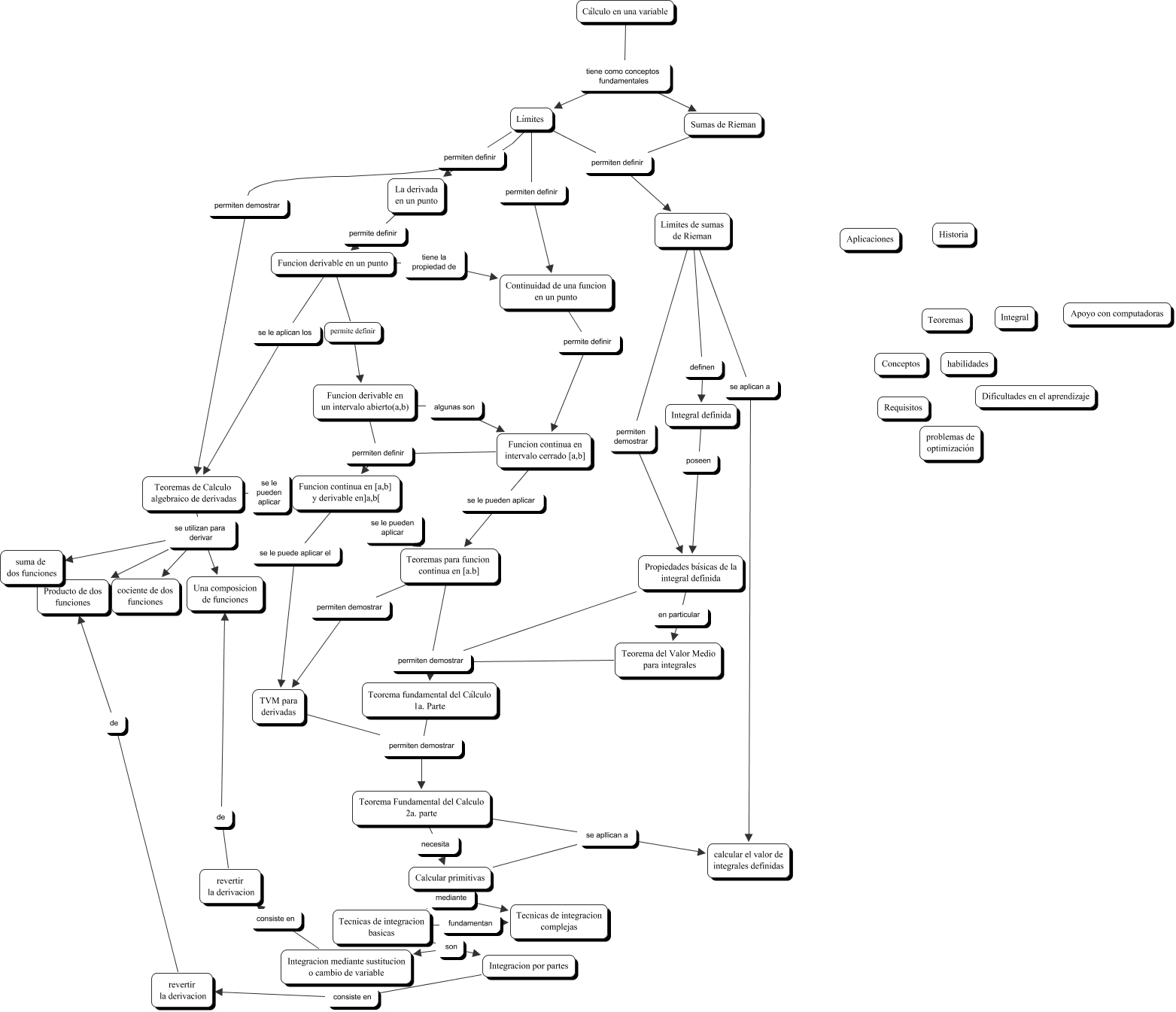 Este Cmap, tiene información relacionada con: Sin Título 2, Calcular primitivas mediante Tecnicas de integracion complejas, Continuidad de una funcion en un punto permite definir Funcion continua en intervalo cerrado [a,b], Límites permiten demostrar Teoremas de Calculo algebraico de derivadas, Teoremas de Calculo algebraico de derivadas se utilizan para derivar suma de dos funciones, Funcion derivable en un intervalo abierto(a,b) permiten definir Funcion continua en [a,b] y derivable en]a,b[, Cálculo en una variable tiene como conceptos fundamentales Límites, revertir la derivacion de Una composicion de funciones, Sumas de Rieman permiten definir Limites de sumas de Rieman, Teorema del Valor Medio para integrales permiten demostrar Teorema fundamental del Cálculo 1a. Parte, Integral definida poseen Propiedades básicas de la integral definida, Funcion derivable en un intervalo abierto(a,b) algunas son Funcion continua en intervalo cerrado [a,b], Funcion continua en intervalo cerrado [a,b] permiten definir Funcion continua en [a,b] y derivable en]a,b[, Limites de sumas de Rieman se aplican a calcular el valor de integrales definidas, Tecnicas de integracion basicas fundamentan Tecnicas de integracion complejas, Funcion continua en [a,b] y derivable en]a,b[ se le puede aplicar el TVM para derivadas, Limites de sumas de Rieman permiten demostrar Propiedades básicas de la integral definida, Cálculo en una variable tiene como conceptos fundamentales Sumas de Rieman, Teoremas para funcion continua en [a.b] permiten demostrar Teorema fundamental del Cálculo 1a. Parte, Funcion continua en [a,b] y derivable en]a,b[ se le pueden aplicar Teoremas para funcion continua en [a.b], Funcion derivable en un punto se le aplican los Teoremas de Calculo algebraico de derivadas