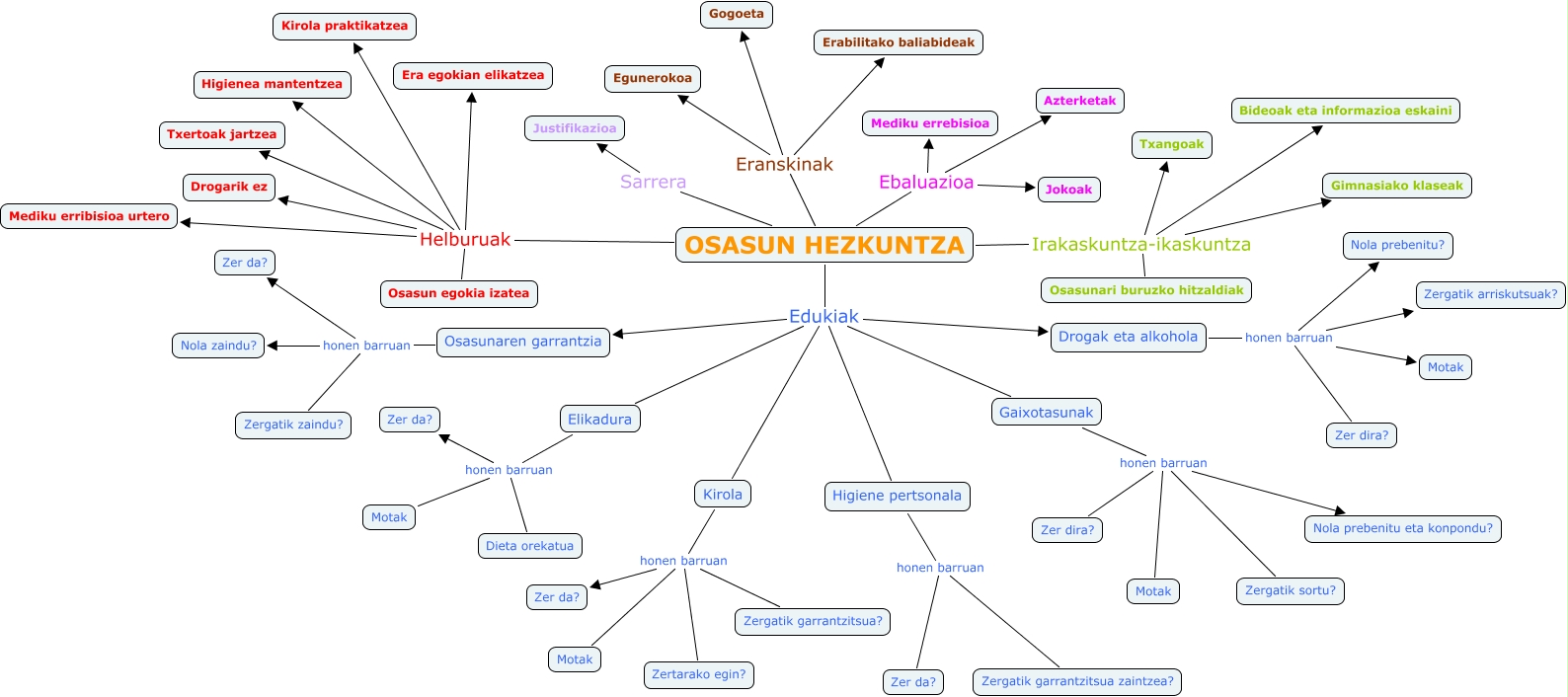 Este Cmap, tiene información relacionada con: Didaktika Euskara Bidean, Kirola honen barruan Zergatik garrantzitsua?, OSASUN HEZKUNTZA Edukiak Drogak eta alkohola, Gaixotasunak honen barruan Zer dira?, Osasunaren garrantzia honen barruan Zer da?, OSASUN HEZKUNTZA Helburuak Drogarik ez, OSASUN HEZKUNTZA Helburuak Txertoak jartzea, OSASUN HEZKUNTZA Ebaluazioa Azterketak, Osasunaren garrantzia honen barruan Nola zaindu?, Elikadura honen barruan Zer da?, OSASUN HEZKUNTZA Edukiak Kirola, Drogak eta alkohola honen barruan Motak, OSASUN HEZKUNTZA Eranskinak Egunerokoa, OSASUN HEZKUNTZA Irakaskuntza-ikaskuntza Gimnasiako klaseak, OSASUN HEZKUNTZA Ebaluazioa Jokoak, Elikadura honen barruan Motak, OSASUN HEZKUNTZA Ebaluazioa Mediku errebisioa, Kirola honen barruan Zertarako egin?, Gaixotasunak honen barruan Motak, Gaixotasunak honen barruan Nola prebenitu eta konpondu?, Higiene pertsonala honen barruan Zergatik garrantzitsua zaintzea?