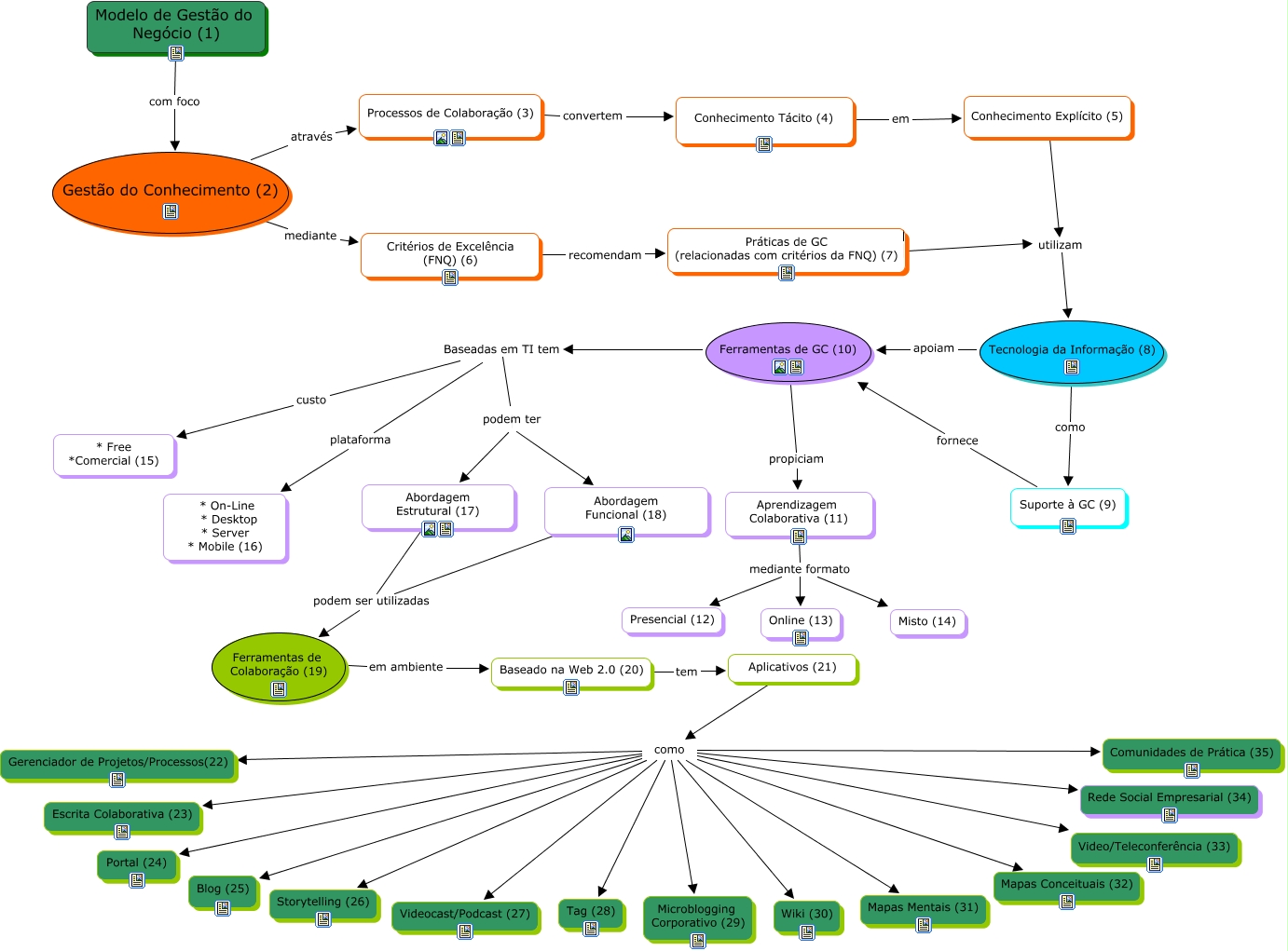 Esse mapa conceitual, produzido no IHMC CmapTools, tem a informação relacionada a: Curso Ferramentas GC_Ulbra, Gestão do Conhecimento (2) através Processos de Colaboração (3), Tecnologia da Informação (8) apoiam, Ferramentas de GC (10) propiciam Aprendizagem Colaborativa (11), Abordagem Estrutural (17) podem ser utilizadas Ferramentas de Colaboração (19), Ferramentas de GC (10) Baseadas em TI tem podem ter, Aplicativos (21) como Microblogging Corporativo (29), plataforma * On-Line * Desktop * Server * Mobile (16), Abordagem Funcional (18) podem ser utilizadas Ferramentas de Colaboração (19), Aplicativos (21) como Portal (24), Modelo de Gestão do Negócio (1) com foco, Gestão do Conhecimento (2) mediante Critérios de Excelência (FNQ) (6), Critérios de Excelência (FNQ) (6) recomendam Práticas de GC (relacionadas com critérios da FNQ) (7), Aplicativos (21) como Videocast/Podcast (27), Aprendizagem Colaborativa (11) mediante formato Online (13), Aplicativos (21) como Tag (28), Processos de Colaboração (3) convertem Conhecimento Tácito (4), Suporte à GC (9) fornece, podem ter Abordagem Funcional (18), Aprendizagem Colaborativa (11) mediante formato Misto (14), podem ter Abordagem Estrutural (17)