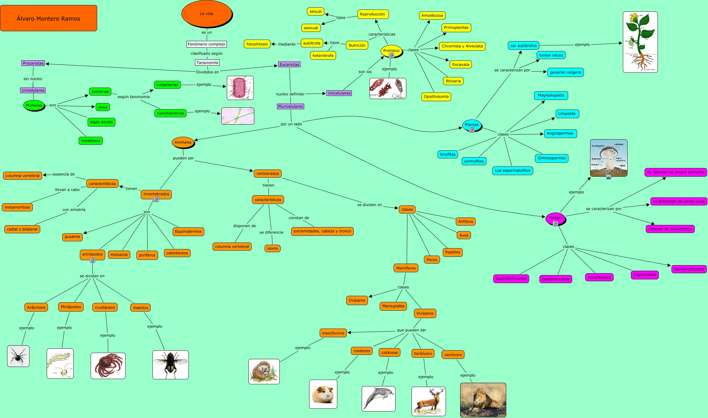 Este Cmap, tiene información relacionada con: Mapa conceptual final, autótrofa mediante fotosíntesis, Vivíparos que pueden ser carnívoro, Protistos clases Opisthokonta, artrópodos se dividen en insectos, Protistos clases Excavata, Tarsonomía Divididos en Procariotas, invertebrados son poríferos, Plantas clases briofitas, Plantas clases Liliopsida, Arácnidos ejemplo, ser autótrofos ejemplo, Pluricelulares por un lado Animales, características ausencia de columna vertebral, Hongos se caracterizan por carecen de movimiento, características se diferencia sexos, Protistos clases Primoplantae, Protistos clases Rhizaria, Procariotas sin núcleo Moneras, características constan de extremidades, cabeza y tronco, artrópodos se dividen en crustáceos