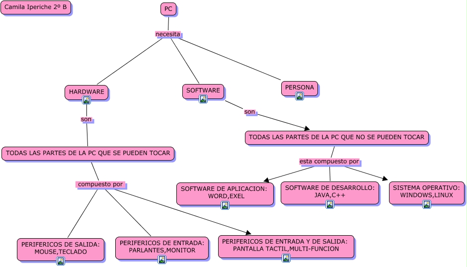 Este Cmap, tiene información relacionada con: Iperiche Hard y Soft.cmap, PC necesita SOFTWARE, TODAS LAS PARTES DE LA PC QUE SE PUEDEN TOCAR compuesto por PERIFERICOS DE SALIDA: MOUSE,TECLADO, SOFTWARE son TODAS LAS PARTES DE LA PC QUE NO SE PUEDEN TOCAR, TODAS LAS PARTES DE LA PC QUE SE PUEDEN TOCAR compuesto por PERIFERICOS DE ENTRADA Y DE SALIDA: PANTALLA TACTIL,MULTI-FUNCION, HARDWARE son TODAS LAS PARTES DE LA PC QUE SE PUEDEN TOCAR, TODAS LAS PARTES DE LA PC QUE NO SE PUEDEN TOCAR esta compuesto por SOFTWARE DE DESARROLLO: JAVA,C++, TODAS LAS PARTES DE LA PC QUE SE PUEDEN TOCAR compuesto por PERIFERICOS DE ENTRADA: PARLANTES,MONITOR, TODAS LAS PARTES DE LA PC QUE NO SE PUEDEN TOCAR esta compuesto por SOFTWARE DE APLICACION: WORD,EXEL, PC necesita PERSONA, PC necesita HARDWARE, TODAS LAS PARTES DE LA PC QUE NO SE PUEDEN TOCAR esta compuesto por SISTEMA OPERATIVO: WINDOWS,LINUX
