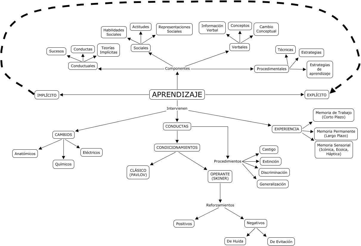 Este Cmap, tiene información relacionada con: Cuadro Final Aprendizaje y Cognición, Sociales Habilidades Sociales, APRENDIZAJE Componentes Procedimentales, APRENDIZAJE EXPLÍCITO, Procedimentales Estrategias, CONDUCTAS Procedimientos Generalización, IMPLÍCITO EXPLÍCITO, Sociales Actitudes, APRENDIZAJE Componentes Sociales, CONDUCTAS Procedimientos Castigo, APRENDIZAJE IMPLÍCITO, Verbales Cambio Conceptual, EXPERIENCIA Memoria Sensorial (Icónica, Ecoica, Háptica), Sociales Representaciones Sociales, Procedimentales Estrategias de aprendizaje, EXPERIENCIA Memoria Permanente (Largo Plazo), OPERANTE (SKINER) Reforzamientos Positivos, APRENDIZAJE Componentes Verbales, Conductuales Conductas, CAMBIOS Anatómicos, APRENDIZAJE Componentes Conductuales