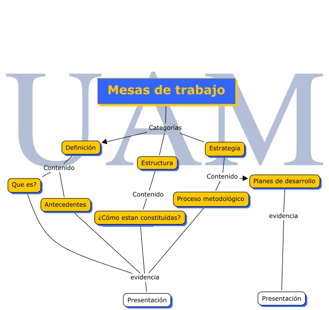 Este Cmap, tiene información relacionada con: Mesas de trabajo, Estrategia Contenido Planes de desarrollo, Estructura Contenido ¿Cómo estan constituidas?, Definición Contenido Que es?, ¿Cómo estan constituidas? evidencia Presentación, Proceso metodológico evidencia Presentación, Mesas de trabajo Categorías Estrategia, Estrategia Contenido Proceso metodológico, Que es? evidencia Presentación, Mesas de trabajo Categorías Definición, Planes de desarrollo evidencia Presentación, Antecedentes evidencia Presentación, Definición Contenido Antecedentes, Mesas de trabajo Categorías Estructura