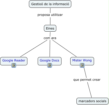 Este Cmap, tiene información relacionada con: Oriol Plana Cmap, Mister Wong que permet crear marcadors socials, Eines com ara Mister Wong, Eines com ara Google Docs, Eines com ara Google Reader, Gestioó de la informació proposa utilitzar Eines
