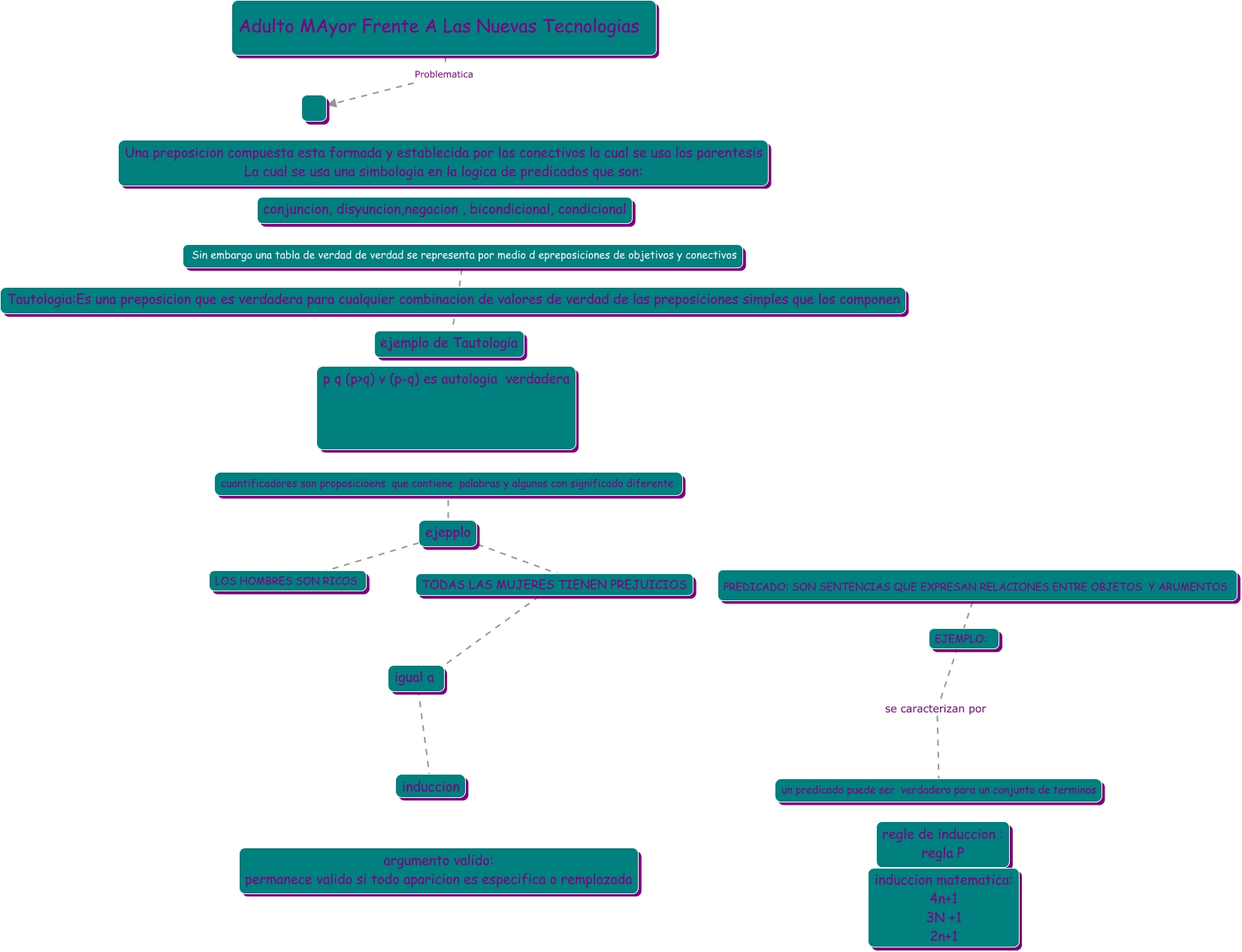Este Cmap, tiene información relacionada con: mapas, ejepplo ???? LOS HOMBRES SON RICOS, PREDICADO: SON SENTENCIAS QUE EXPRESAN RELACIONES ENTRE OBJETOS Y ARUMENTOS se caracterizan por un predicado puede ser verdadero para un conjunto de terminos, cuantificadores son proposicioens que contiene palabras y algunos con significado diferente son ejepplo, TODAS LAS MUJERES TIENEN PREJUICIOS ???? induccion, Sin embargo una tabla de verdad de verdad se representa por medio d epreposiciones de objetivos y conectivos ???? ejemplo de Tautologia, Adulto MAyor Frente A Las Nuevas Tecnologias Problematica, ejepplo ???? TODAS LAS MUJERES TIENEN PREJUICIOS