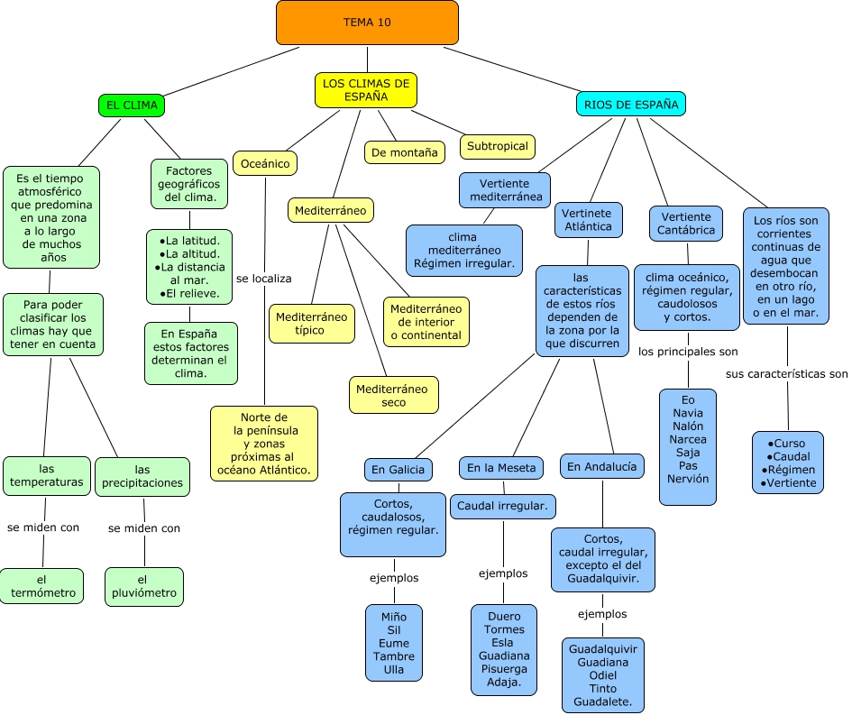 Este Cmap, tiene información relacionada con: TEMA 10 julia, Oceánico se localiza Norte de la península y zonas próximas al océano Atlántico., Mediterráneo ???? Mediterráneo de interior o continental, Vertinete Atlántica ???? las características de estos ríos dependen de la zona por la que discurren, En la Meseta ???? Caudal irregular., RIOS DE ESPAÑA ???? Los ríos son corrientes continuas de agua que desembocan en otro río, en un lago o en el mar., En Andalucía ???? Cortos, caudal irregular, excepto el del Guadalquivir., RIOS DE ESPAÑA ???? Vertiente mediterránea, LOS CLIMAS DE ESPAÑA ???? Subtropical, las características de estos ríos dependen de la zona por la que discurren ???? En Galicia, Factores geográficos del clima. ???? ∙La latitud. ∙La altitud. ∙La distancia al mar. ∙El relieve., Vertiente Cantábrica ???? clima oceánico, régimen regular, caudolosos y cortos., Cortos, caudal irregular, excepto el del Guadalquivir. ejemplos Guadalquivir Guadiana Odiel Tinto Guadalete., Mediterráneo ???? Mediterráneo típico, Los ríos son corrientes continuas de agua que desembocan en otro río, en un lago o en el mar. sus características son ∙Curso ∙Caudal ∙Régimen ∙Vertiente, En Galicia ???? Cortos, caudalosos, régimen regular., las características de estos ríos dependen de la zona por la que discurren ???? En la Meseta, Cortos, caudalosos, régimen regular. ejemplos Miño Sil Eume Tambre Ulla, RIOS DE ESPAÑA ???? Vertiente Cantábrica, Mediterráneo ???? Mediterráneo seco, Es el tiempo atmosférico que predomina en una zona a lo largo de muchos años ???? Para poder clasificar los climas hay que tener en cuenta