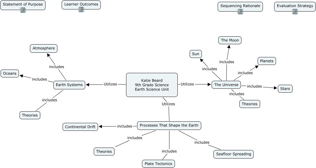 This Concept Map, created with IHMC CmapTools, has information related to: Earth Science Unit, Katie Beard 9th Grade Science Earth Science Unit Utilizes Earth Systems, Processes That Shape the Earth includes Seafloor Spreading, Earth Systems includes Atmosphere, Processes That Shape the Earth includes Theories, Katie Beard 9th Grade Science Earth Science Unit Utilizes The Universe, Earth Systems includes Theories, The Universe includes Theories, Katie Beard 9th Grade Science Earth Science Unit Utilizes Processes That Shape the Earth, The Universe includes Stars, The Universe includes Sun, The Universe includes The Moon, Processes That Shape the Earth includes Continental Drift, Earth Systems includes Oceans, The Universe includes Planets, Processes That Shape the Earth includes Plate Tectonics