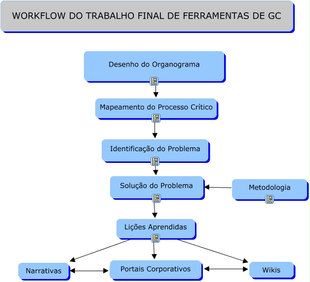 Esse mapa conceitual, produzido no IHMC CmapTools, tem a informação relacionada a: Workflow da Tarefa de Ferramenta de GC, Portais Corporativos Wikis, Solução do Problema ???? Lições Aprendidas, Desenho do Organograma ???? Mapeamento do Processo Crítico, Portais Corporativos Narrativas, Lições Aprendidas ???? Narrativas, Identificação do Problema ???? Solução do Problema, Lições Aprendidas ???? Wikis, Metodologia ???? Solução do Problema, Lições Aprendidas ???? Portais Corporativos, Mapeamento do Processo Crítico ???? Identificação do Problema