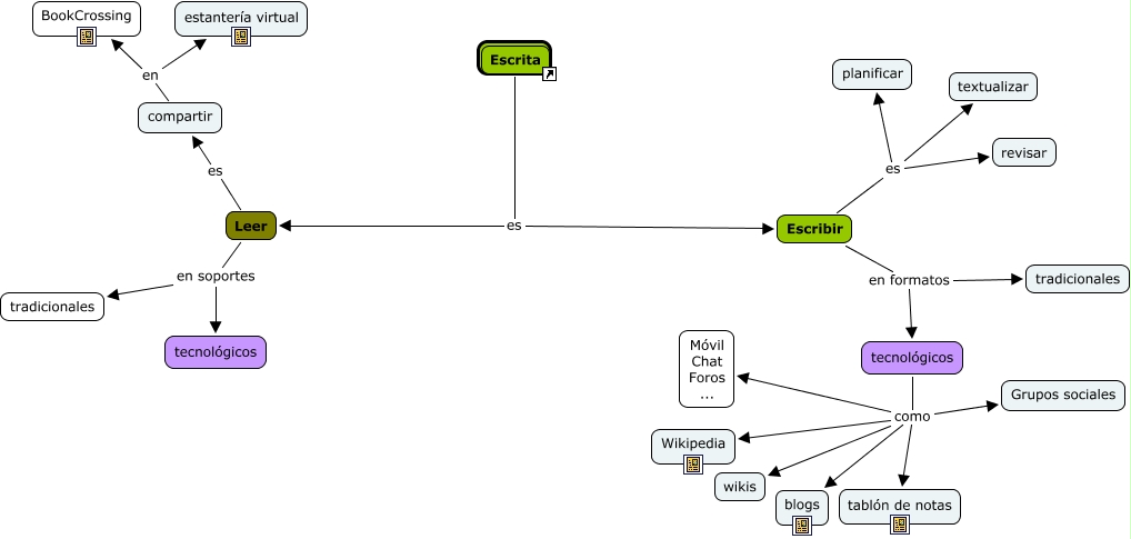 Este Cmap, tiene información relacionada con: CCLinguistica_Escrita, Escribir es planificar, tecnológicos como Grupos sociales, tecnológicos como wikis, tecnológicos como tablón de notas, tecnológicos como blogs, Escribir es textualizar, Escrita es Leer, tecnológicos como Móvil Chat Foros ..., Escribir en formatos tradicionales, Escribir en formatos tecnológicos, Escribir es revisar, Leer en soportes tecnológicos, Leer en soportes tradicionales, compartir en BookCrossing, Escrita es Escribir, compartir en estantería virtual, tecnológicos como Wikipedia, Leer es compartir