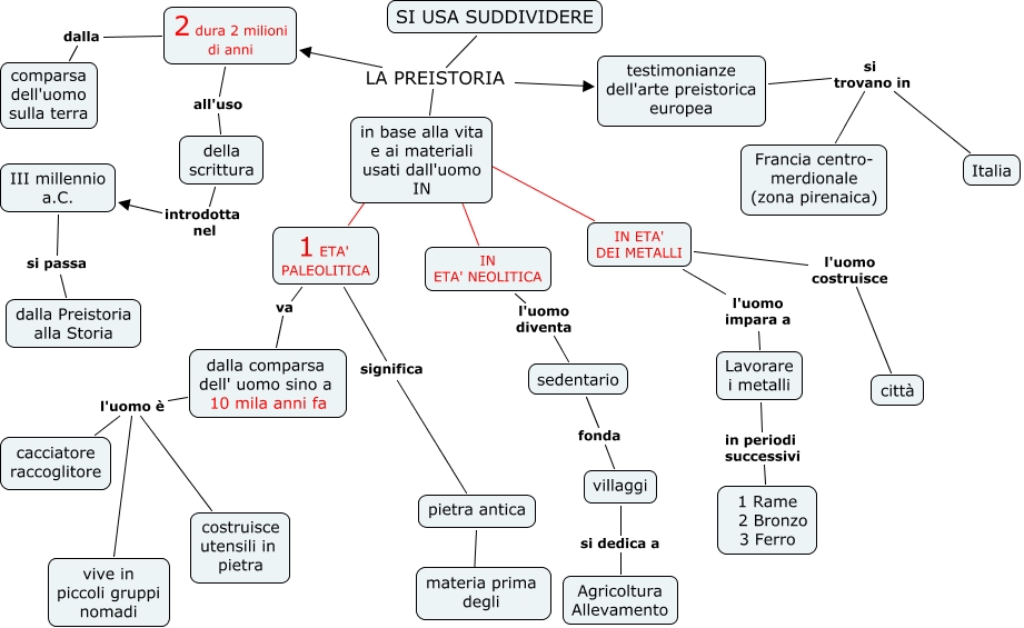 Questa Cmap, creata con IHMC CmapTools, contiene informazioni relative a: la Preistoria, Lavorare i metalli in periodi successivi 1 Rame 2 Bronzo 3 Ferro, dalla comparsa dell' uomo sino a 10 mila anni fa l'uomo è costruisce utensili in pietra, in base alla vita e ai materiali usati dall'uomo IN ???? IN ETA' NEOLITICA, dalla comparsa dell' uomo sino a 10 mila anni fa l'uomo è cacciatore raccoglitore, IN ETA' DEI METALLI l'uomo impara a Lavorare i metalli, SI USA SUDDIVIDERE LA PREISTORIA 2 dura 2 milioni di anni, della scrittura introdotta nel III millennio a.C., dalla comparsa dell' uomo sino a 10 mila anni fa l'uomo è vive in piccoli gruppi nomadi, 1 ETA' PALEOLITICA va dalla comparsa dell' uomo sino a 10 mila anni fa, in base alla vita e ai materiali usati dall'uomo IN ???? IN ETA' DEI METALLI, SI USA SUDDIVIDERE LA PREISTORIA in base alla vita e ai materiali usati dall'uomo IN, SI USA SUDDIVIDERE LA PREISTORIA testimonianze dell'arte preistorica europea, 2 dura 2 milioni di anni dalla comparsa dell'uomo sulla terra, III millennio a.C. si passa dalla Preistoria alla Storia, in base alla vita e ai materiali usati dall'uomo IN ???? 1 ETA' PALEOLITICA, testimonianze dell'arte preistorica europea si trovano in Italia, 1 ETA' PALEOLITICA significa pietra antica, 2 dura 2 milioni di anni all'uso della scrittura, pietra antica ght materia prima degli, villaggi si dedica a Agricoltura Allevamento