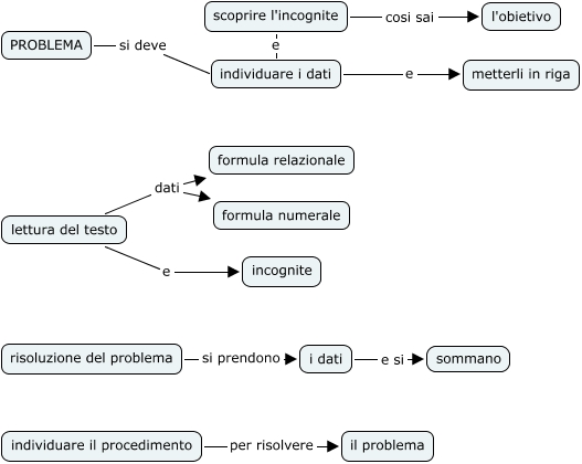 Questa Cmap, creata con IHMC CmapTools, contiene informazioni relative a: risolvere il problema, lettura del testo dati formula relazionale, i dati e si sommano, individuare i dati e metterli in riga, individuare il procedimento per risolvere il problema, individuare i dati e scoprire l'incognite, lettura del testo e incognite, risoluzione del problema si prendono i dati, scoprire l'incognite cosi sai l'obietivo, PROBLEMA si deve individuare i dati, lettura del testo dati formula numerale