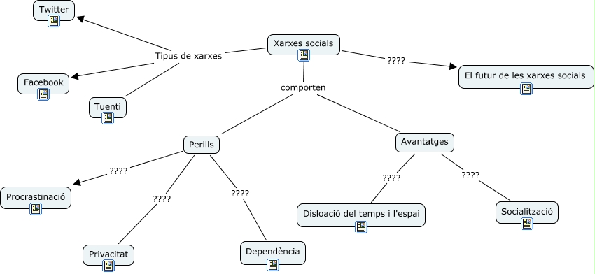 Este Cmap, tiene información relacionada con: UF GESTIO, Avantatges ???? Disloació del temps i l'espai, Perills ???? Dependència, Avantatges ???? Socialització, Perills ???? Privacitat, Xarxes socials comporten Avantatges, Xarxes socials comporten Perills, Xarxes socials Tipus de xarxes Facebook, Perills ???? Procrastinació, Xarxes socials ???? El futur de les xarxes socials, Xarxes socials Tipus de xarxes Twitter, Xarxes socials Tipus de xarxes Tuenti