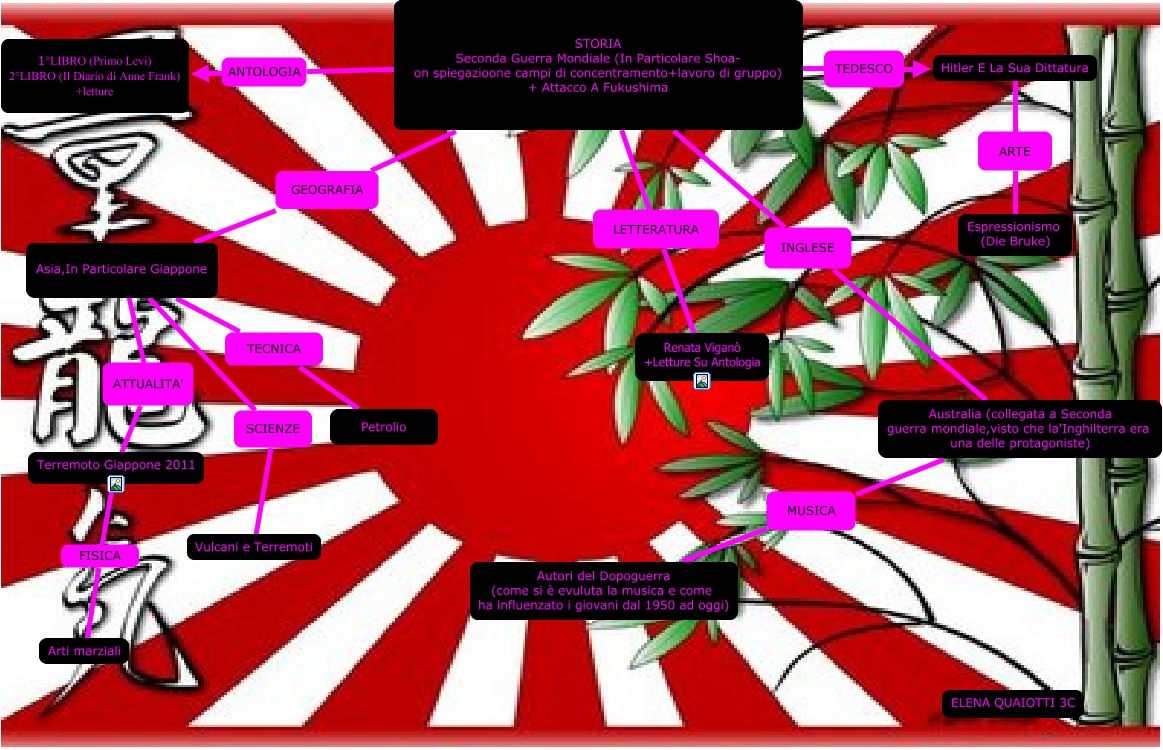 Questa Cmap, creata con IHMC CmapTools, contiene informazioni relative a: MAPPA ESAME ELENA 3C.cmap, STORIA Seconda Guerra Mondiale (In Particolare Shoa- on spiegazioone campi di concentramento+lavoro di gruppo) + Attacco A Fukushima LETTERATURA Renata Viganò +Letture Su Antologia, STORIA Seconda Guerra Mondiale (In Particolare Shoa- on spiegazioone campi di concentramento+lavoro di gruppo) + Attacco A Fukushima TEDESCO Hitler E La Sua Dittatura, STORIA Seconda Guerra Mondiale (In Particolare Shoa- on spiegazioone campi di concentramento+lavoro di gruppo) + Attacco A Fukushima INGLESE Australia (collegata a Seconda guerra mondiale,visto che la'Inghilterra era una delle protagoniste), Asia,In Particolare Giappone SCIENZE Vulcani e Terremoti, STORIA Seconda Guerra Mondiale (In Particolare Shoa- on spiegazioone campi di concentramento+lavoro di gruppo) + Attacco A Fukushima ANTOLOGIA 1°LIBRO (Primo Levi) 2°LIBRO (Il Diario di Anne Frank) +letture, Hitler E La Sua Dittatura ARTE Espressionismo (Die Bruke), Australia (collegata a Seconda guerra mondiale,visto che la'Inghilterra era una delle protagoniste) MUSICA Autori del Dopoguerra (come si è evuluta la musica e come ha influenzato i giovani dal 1950 ad oggi), Asia,In Particolare Giappone TECNICA Petrolio, Terremoto Giappone 2011 FISICA Arti marziali, STORIA Seconda Guerra Mondiale (In Particolare Shoa- on spiegazioone campi di concentramento+lavoro di gruppo) + Attacco A Fukushima GEOGRAFIA Asia,In Particolare Giappone, Asia,In Particolare Giappone ATTUALITA' Terremoto Giappone 2011
