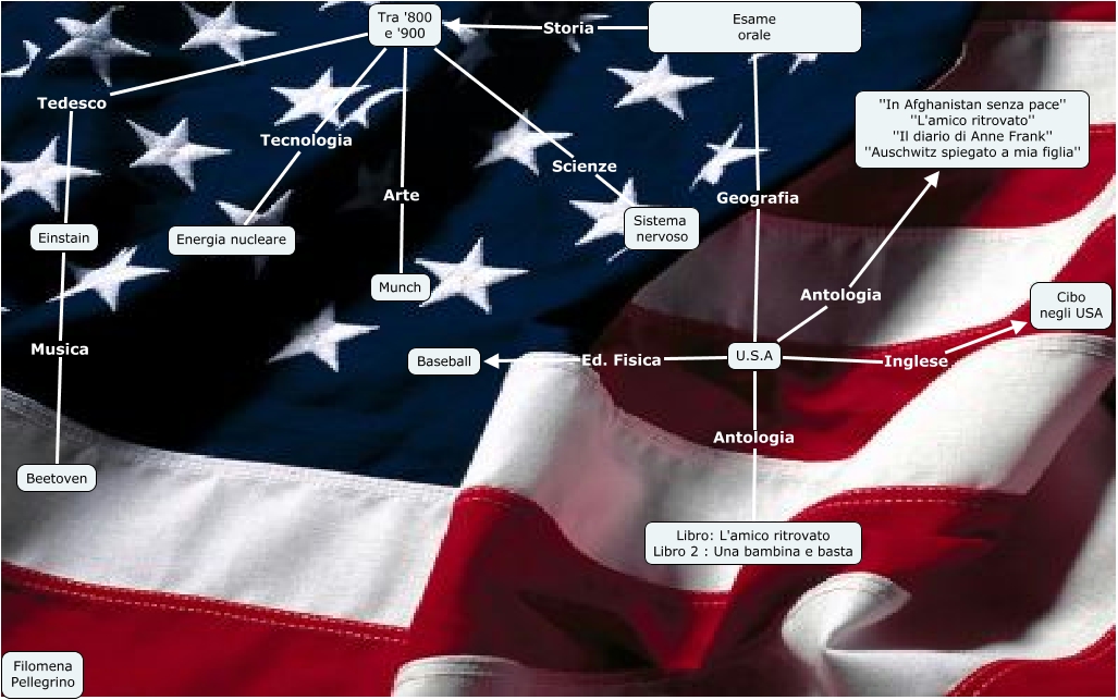 Questa Cmap, creata con IHMC CmapTools, contiene informazioni relative a: Mappa esame Filomena.cmap, Einstain Musica Beetoven, U.S.A Ed. Fisica Baseball, Tra '800 e '900 Arte Munch, Tra '800 e '900 Tedesco Einstain, U.S.A Antologia Libro: L'amico ritrovato Libro 2 : Una bambina e basta, Esame orale Storia Tra '800 e '900, U.S.A Inglese Cibo negli USA, Tra '800 e '900 Tecnologia Energia nucleare, Tra '800 e '900 Scienze Sistema nervoso, Esame orale Geografia U.S.A, U.S.A Antologia ''In Afghanistan senza pace'' ''L'amico ritrovato'' ''Il diario di Anne Frank'' ''Auschwitz spiegato a mia figlia''