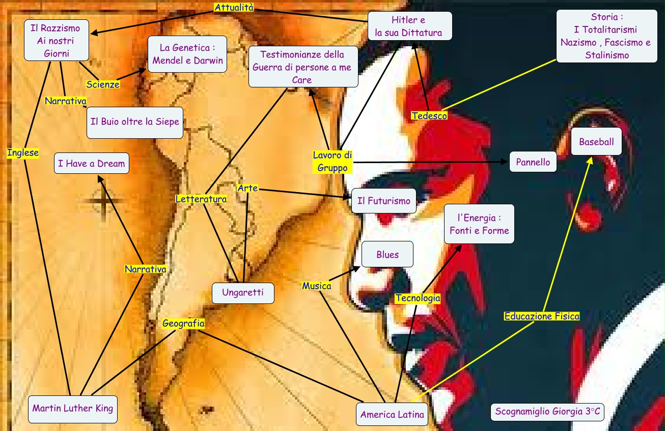 Questa Cmap, creata con IHMC CmapTools, contiene informazioni relative a: Mappa Esame Giorgia.cmap, Hitler e la sua Dittatura Attualità Il Razzismo Ai nostri Giorni, Testimonianze della Guerra di persone a me Care Letteratura Ungaretti, America Latina Tecnologia l'Energia : Fonti e Forme, Hitler e la sua Dittatura Lavoro di Gruppo Testimonianze della Guerra di persone a me Care, Il Razzismo Ai nostri Giorni Scienze La Genetica : Mendel e Darwin, America Latina Educazione Fisica Baseball, Storia : I Totalitarismi Nazismo , Fascismo e Stalinismo Tedesco Hitler e la sua Dittatura, Il Razzismo Ai nostri Giorni Inglese Martin Luther King, Hitler e la sua Dittatura Lavoro di Gruppo Pannello, Martin Luther King Narrativa I Have a Dream, America Latina Musica Blues, Martin Luther King Geografia America Latina, Il Razzismo Ai nostri Giorni Narrativa Il Buio oltre la Siepe, Ungaretti Arte Il Futurismo