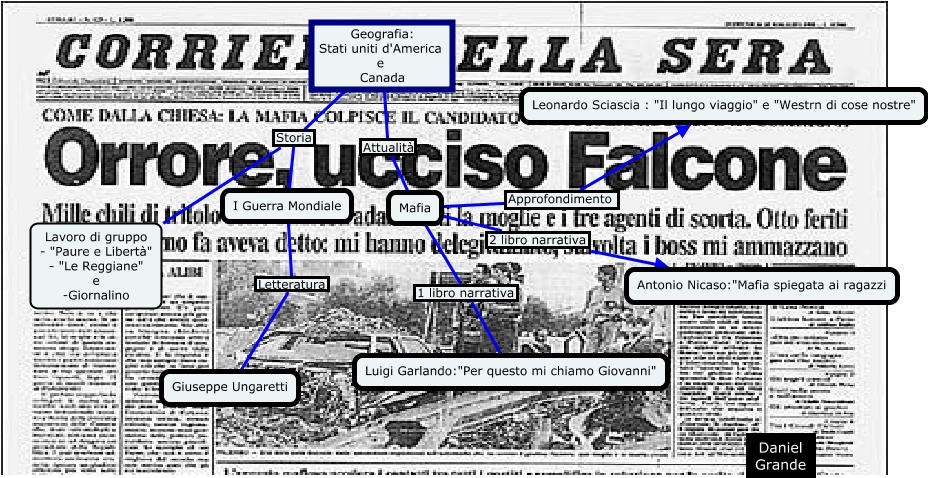 Questa Cmap, creata con IHMC CmapTools, contiene informazioni relative a: Mappa lettere Daniel Grande, I Guerra Mondiale Letteratura Giuseppe Ungaretti, Geografia: Stati uniti d'America e Canada Storia I Guerra Mondiale, Geografia: Stati uniti d'America e Canada Storia Lavoro di gruppo - "Paure e Libertà" - "Le Reggiane" e -Giornalino, Geografia: Stati uniti d'America e Canada Attualità Mafia, Mafia 1 libro narrativa Luigi Garlando:"Per questo mi chiamo Giovanni", Mafia 2 libro narrativa Antonio Nicaso:"Mafia spiegata ai ragazzi, Mafia Approfondimento Leonardo Sciascia : "Il lungo viaggio" e "Westrn di cose nostre"