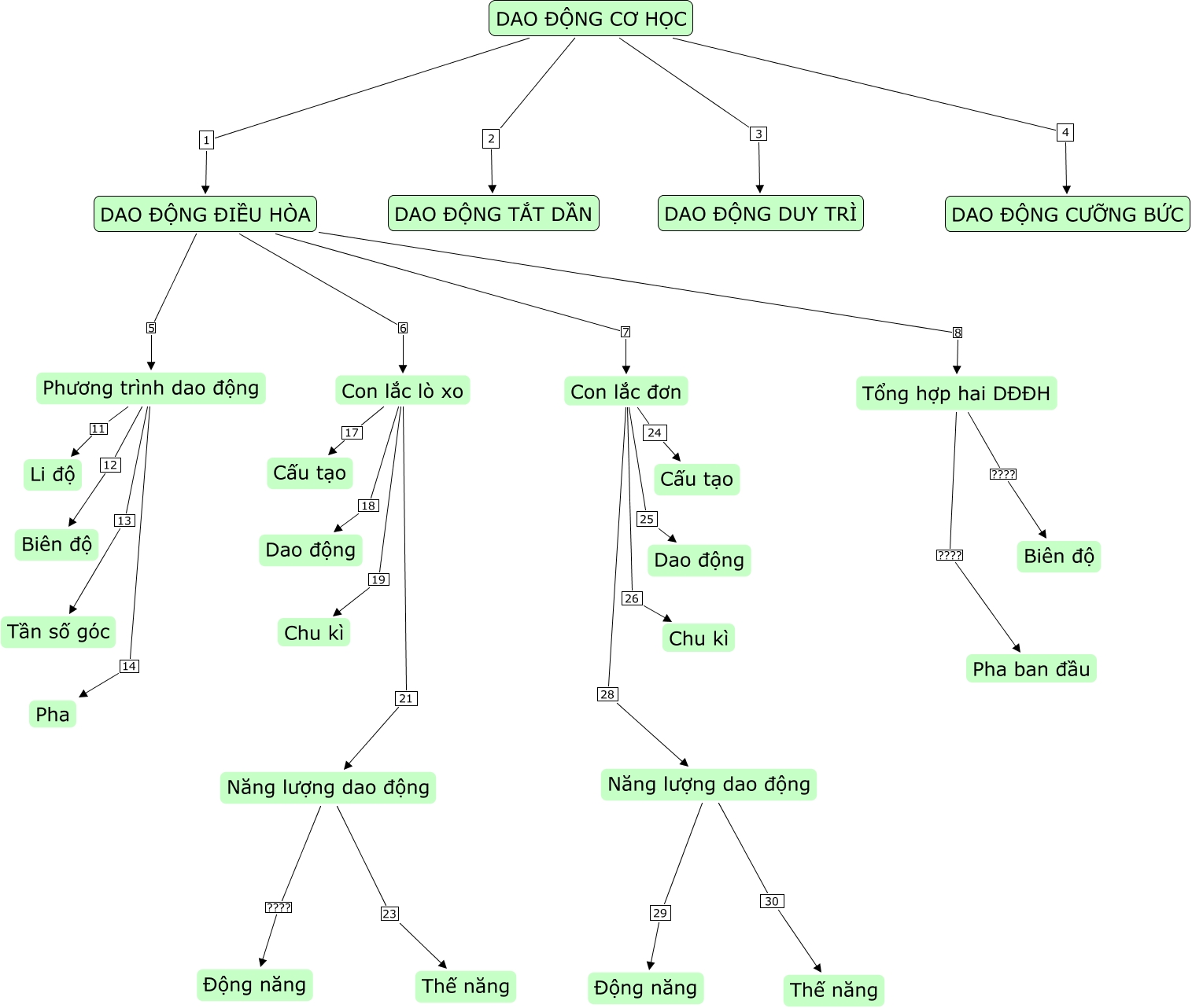 This Concept Map, created with IHMC CmapTools, has information related to: Dao động HS, DAO ĐỘNG CƠ HỌC 3 DAO ĐỘNG DUY TRÌ, Con lắc lò xo 21 Năng lượng dao động, Phương trình dao động 14 Pha, Năng lượng dao động 30 Thế năng, Con lắc lò xo 18 Dao động, DAO ĐỘNG CƠ HỌC 4 DAO ĐỘNG CƯỠNG BỨC, Con lắc đơn 25 Dao động, Con lắc lò xo 17 Cấu tạo, Tổng hợp hai DĐĐH ???? Pha ban đầu, DAO ĐỘNG ĐIỀU HÒA 6 Con lắc lò xo, Phương trình dao động 13 Tần số góc, DAO ĐỘNG CƠ HỌC 2 DAO ĐỘNG TẮT DẦN, Con lắc đơn 24 Cấu tạo, DAO ĐỘNG ĐIỀU HÒA 7 Con lắc đơn, DAO ĐỘNG ĐIỀU HÒA 8 Tổng hợp hai DĐĐH, Phương trình dao động 12 Biên độ, Tổng hợp hai DĐĐH ???? Biên độ, Năng lượng dao động ???? Động năng, Năng lượng dao động 23 Thế năng, Năng lượng dao động 29 Động năng