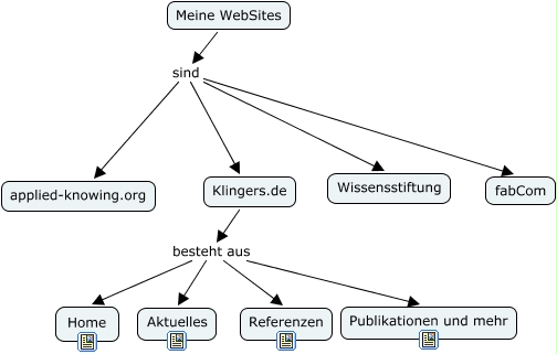 Dieses mit IHMC CmapTools erstellte CMap hat Informationen bezüglich: My WebSite, Meine WebSites sind applied-knowing.org, Klingers.de besteht aus Aktuelles, Klingers.de besteht aus Publikationen und mehr, Klingers.de besteht aus Home, Meine WebSites sind Wissensstiftung, Meine WebSites sind fabCom, Klingers.de besteht aus Referenzen, Meine WebSites sind Klingers.de