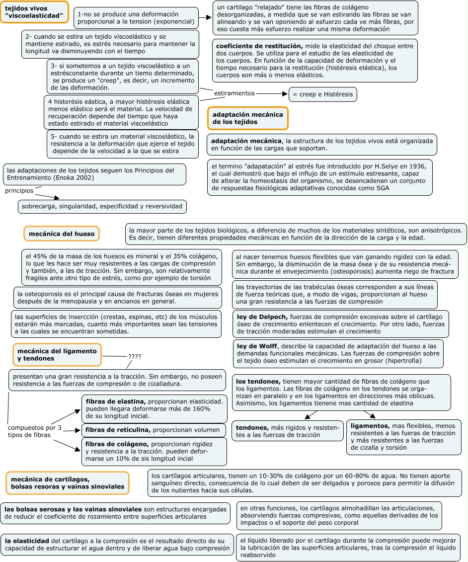 Este Cmap, tiene información relacionada con: COMPLETO 6, presentan una gran resistencia a la tracción. Sin embargo, no poseen resistencia a las fuerzas de compresión o de cizalladura. compuestos por 3 tipos de fibras fibras de reticulina, proporcionan volumen, los tendones, tienen mayor cantidad de fibras de colágeno que los ligamentos. Las fibras de colágeno en los tendones se orga- nizan en paralelo y en los ligamentos en direcciones más oblicuas. Asimismo, los ligamentos tienene mas cantidad de elastina ???? ligamentos, mas flexibles, menos resistentes a las fueras de tracción y más resistentes a las fuerzas de cizalla y torsión, 1-no se produce una deformación proporcional a la tension (exponencial) ???? un cartilago "relajado" tiene las fibras de colágeno desorganizadas, a medida que se van estirando las fibras se van alineando y se van oponiendo al esfuerzo cada ve más fibras, por eso cuesta más esfuerzo realizar una misma deformación, las adaptaciones de los tejidos seguen los Principios del Entrenamiento (Enoka 2002) principios sobrecarga, singularidad, especificidad y reversividad, 4 histerésis eástica, a mayor histéresis elástica menos elástico será el material. La velocidad de recuperación depende del tiempo que haya estado estirado el material viscoelástico estiramientos = creep e Histéresis, presentan una gran resistencia a la tracción. Sin embargo, no poseen resistencia a las fuerzas de compresión o de cizalladura. compuestos por 3 tipos de fibras fibras de elastina, proporcionan elasticidad. pueden llegara deformarse más de 160% de su longitud inicial., los tendones, tienen mayor cantidad de fibras de colágeno que los ligamentos. Las fibras de colágeno en los tendones se orga- nizan en paralelo y en los ligamentos en direcciones más oblicuas. Asimismo, los ligamentos tienene mas cantidad de elastina ???? tendones, más rigidos y resisten- tes a las fuerzas de tracción, presentan una gran resistencia a la tracción. Sin embargo, no poseen resistencia a las fuerzas de compresión o de cizalladura. compuestos por 3 tipos de fibras fibras de colágeno, proporcionan rigidez y resistencia a la tracción. pueden defor- marse un 10% de sis longitud incial, mecánica del ligamento y tendones ???? presentan una gran resistencia a la tracción. Sin embargo, no poseen resistencia a las fuerzas de compresión o de cizalladura., 3- si sometemos a un tejido viscoelástico a un estrésconstante durante un tiemo determinado, se produce un "creep", es decir, un incremento de las deformación. estiramientos = creep e Histéresis