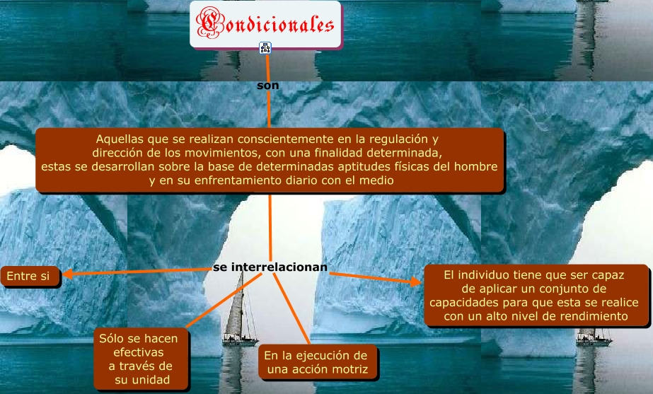 Este Cmap, tiene información relacionada con: coordinativas, Aquellas que se realizan conscientemente en la regulación y dirección de los movimientos, con una finalidad determinada, estas se desarrollan sobre la base de determinadas aptitudes físicas del hombre y en su enfrentamiento diario con el medio se interrelacionan Entre si, Condicionales son Aquellas que se realizan conscientemente en la regulación y dirección de los movimientos, con una finalidad determinada, estas se desarrollan sobre la base de determinadas aptitudes físicas del hombre y en su enfrentamiento diario con el medio, Aquellas que se realizan conscientemente en la regulación y dirección de los movimientos, con una finalidad determinada, estas se desarrollan sobre la base de determinadas aptitudes físicas del hombre y en su enfrentamiento diario con el medio se interrelacionan El individuo tiene que ser capaz de aplicar un conjunto de capacidades para que esta se realice con un alto nivel de rendimiento, Aquellas que se realizan conscientemente en la regulación y dirección de los movimientos, con una finalidad determinada, estas se desarrollan sobre la base de determinadas aptitudes físicas del hombre y en su enfrentamiento diario con el medio se interrelacionan Sólo se hacen efectivas a través de su unidad, Aquellas que se realizan conscientemente en la regulación y dirección de los movimientos, con una finalidad determinada, estas se desarrollan sobre la base de determinadas aptitudes físicas del hombre y en su enfrentamiento diario con el medio se interrelacionan En la ejecución de una acción motriz