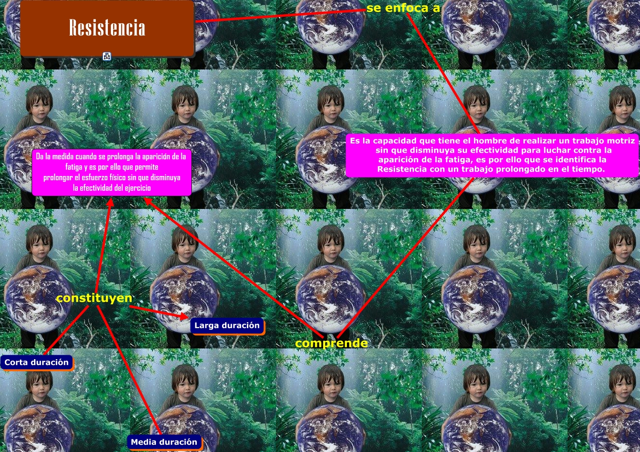 Este Cmap, tiene información relacionada con: resistencia 1 y 2, Corta duración constituyen Da la medida cuando se prolonga la aparición de la fatiga y es por ello que permite prolongar el esfuerzo físico sin que disminuya la efectividad del ejercicio, Corta duración constituyen Larga duración, Es la capacidad que tiene el hombre de realizar un trabajo motriz sin que disminuya su efectividad para luchar contra la aparición de la fatiga, es por ello que se identifica la Resistencia con un trabajo prolongado en el tiempo. comprende Da la medida cuando se prolonga la aparición de la fatiga y es por ello que permite prolongar el esfuerzo físico sin que disminuya la efectividad del ejercicio, Resistencia se enfoca a Es la capacidad que tiene el hombre de realizar un trabajo motriz sin que disminuya su efectividad para luchar contra la aparición de la fatiga, es por ello que se identifica la Resistencia con un trabajo prolongado en el tiempo., Corta duración constituyen Media duración