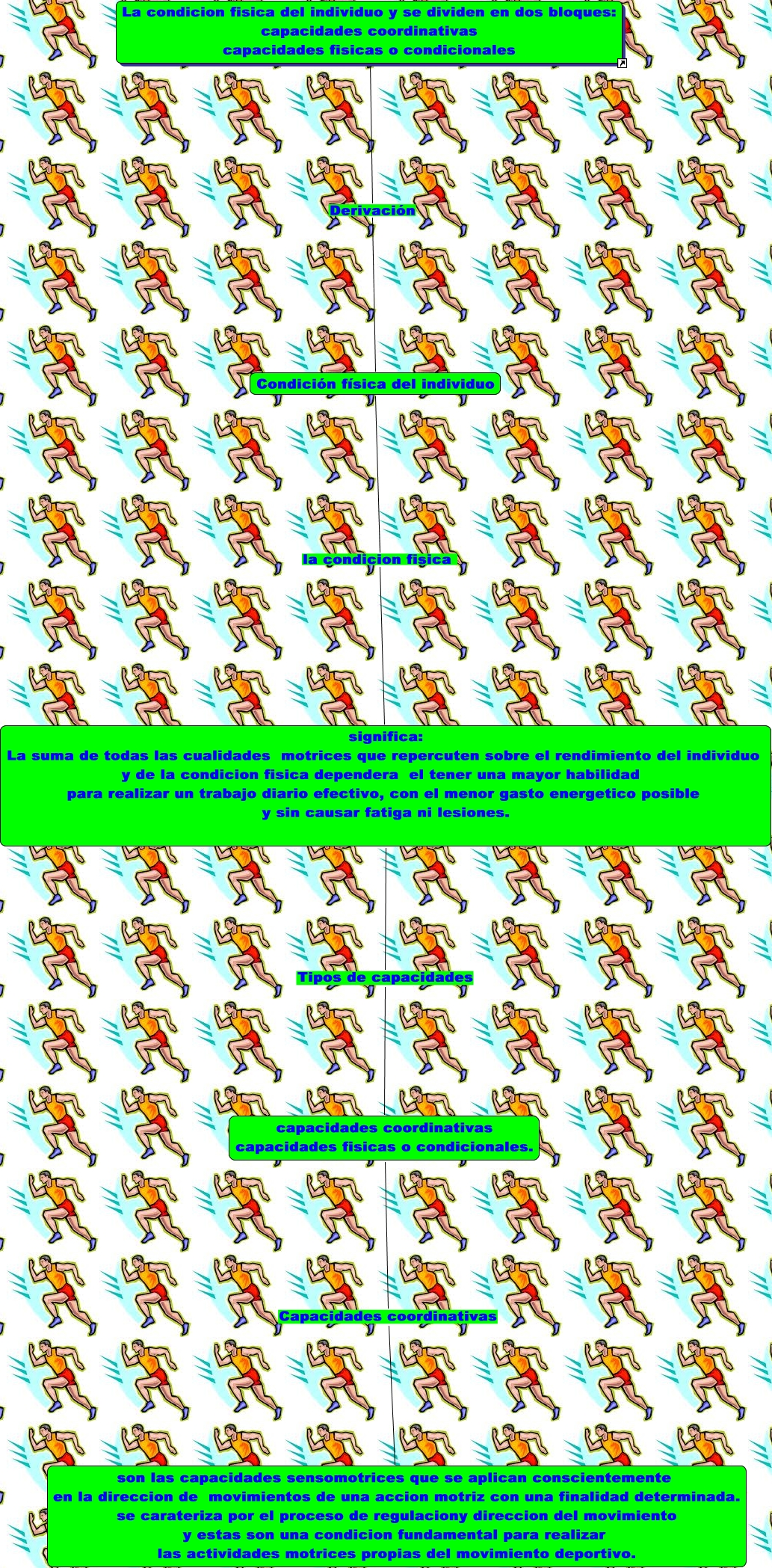 Este Cmap, tiene información relacionada con: hipervin del cuadro 2 capacidades, capacidades coordinativas capacidades fisicas o condicionales. Capacidades coordinativas son las capacidades sensomotrices que se aplican conscientemente en la direccion de movimientos de una accion motriz con una finalidad determinada. se carateriza por el proceso de regulaciony direccion del movimiento y estas son una condicion fundamental para realizar las actividades motrices propias del movimiento deportivo., significa: La suma de todas las cualidades motrices que repercuten sobre el rendimiento del individuo y de la condicion fisica dependera el tener una mayor habilidad para realizar un trabajo diario efectivo, con el menor gasto energetico posible y sin causar fatiga ni lesiones. Tipos de capacidades capacidades coordinativas capacidades fisicas o condicionales., Condición física del individuo la condicion fisica significa: La suma de todas las cualidades motrices que repercuten sobre el rendimiento del individuo y de la condicion fisica dependera el tener una mayor habilidad para realizar un trabajo diario efectivo, con el menor gasto energetico posible y sin causar fatiga ni lesiones., La condicion fisica del individuo y se dividen en dos bloques: capacidades coordinativas capacidades fisicas o condicionales Derivación Condición física del individuo