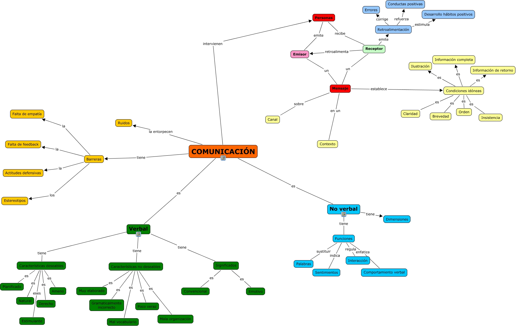 Este Cmap, tiene información relacionada con: Comunicación2.cmap, Características deseables es Derecho, Condiciones idóneas es Orden, Mensaje sobre Canal, Características deseables eses Estimulante, Barreras la Falta de feedback, Mensaje establece Condiciones idóneas, Retroalimentación refuerza Conductas positivas, Condiciones idóneas es Ilustración, Significados es Emotivo, Funciones enfatiza Comportamiento verbal, Características no deseables es Mala organización, Receptor retroalimenta Emisor, Condiciones idóneas es Información completa, Retroalimentación corrige Errores, Barreras la Actitudes defensivas, Características no deseables es Gramaticalmente incorrecto, Características no deseables es Muy elaborado, Características deseables es Natural, Verbal tiene Características no deseables, Condiciones idóneas es Insistencia