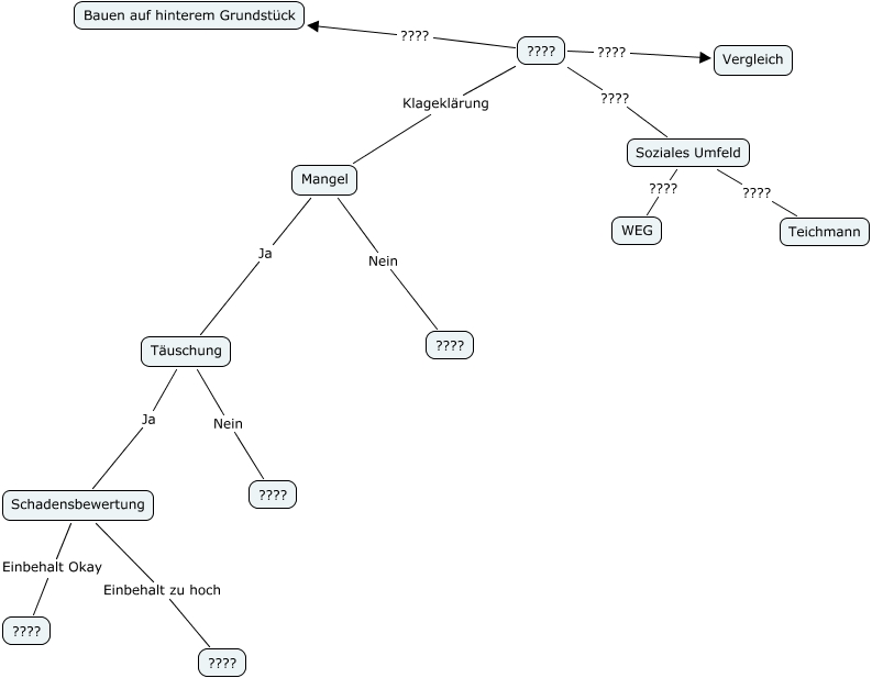 Dieses mit IHMC CmapTools erstellte CMap hat Informationen bezüglich: ProzessStrategie, Schadensbewertung Einbehalt Okay ????, Soziales Umfeld ???? WEG, Mangel Nein ????, ???? Klageklärung Mangel, Mangel Ja Täuschung, ???? ???? Bauen auf hinterem Grundstück, Schadensbewertung Einbehalt zu hoch ????, ???? ???? Soziales Umfeld, Täuschung Ja Schadensbewertung, Täuschung Nein ????, Soziales Umfeld ???? Teichmann, ???? ???? Vergleich