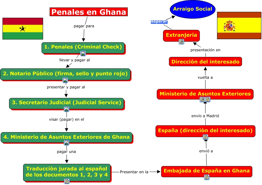 Este Cmap, tiene información relacionada con: Penales_Ghana, 4. Ministerio de Asuntos Exteriores de Ghana pagar una Traducción jurada al español de los documentos 1, 2, 3 y 4, 1. Penales (Criminal Check) llevar y pagar al 2. Notario Público (firma, sello y punto rojo), 2. Notario Público (firma, sello y punto rojo) presentar y pagar al 3. Secretario Judicial (Judicial Service), España (dirección del interesado) envío a Madrid Ministerio de Asuntos Exteriores, Ministerio de Asuntos Exteriores vuelta a Dirección del interesado, 3. Secretario Judicial (Judicial Service) visar (pagar) en el 4. Ministerio de Asuntos Exteriores de Ghana, Penales en Ghana pagar para 1. Penales (Criminal Check), Embajada de España en Ghana envió a España (dirección del interesado), Traducción jurada al español de los documentos 1, 2, 3 y 4 Presentar en la Embajada de España en Ghana, Extranjería esperar Arraigo Social, Dirección del interesado presentación en Extranjería