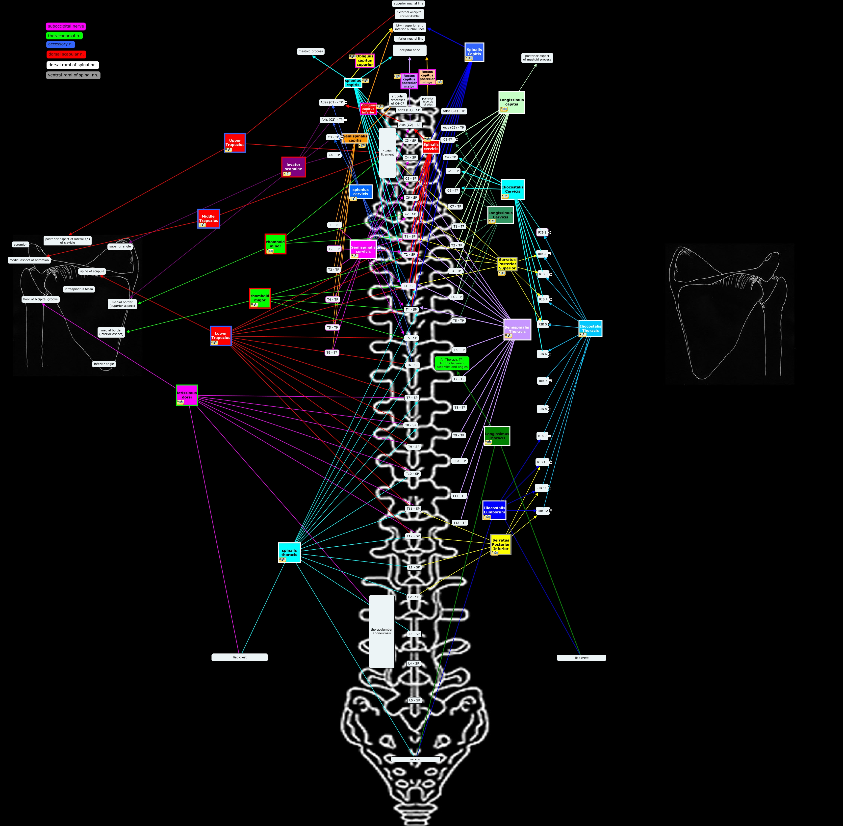 This Concept Map, created with IHMC CmapTools, has information related to: Untitled, T2 - SP Spinalis cervicis Axis (C2) - SP, T6 - SP Lower Trapezius spine of scapula, sacrum spinalis thoracis T4 - SP, T4 - TP Semispinalis cervicis T5 - SP, T8 - TP Semispinalis Thoracis T1 - SP, L1 - SP Serratus Posterior Inferior RIB 12, T3 - TP Semispinalis cervicis C5 - SP, T10 - SP spinalis thoracis T7 - SP, T1 - TP Longissimus capitis posterior aspect of mastoid process, C4 - TP levator scapulae medial border (superior aspect), T3 - SP Serratus Posterior Superior upper border, upper border Iliocostalis Thoracis angle, T1 - SP Semispinalis cervicis C7 - SP, Axis (C2) - TP levator scapulae superior angle, T12 - TP Semispinalis Thoracis C5 - SP, T11 - SP spinalis thoracis T4 - SP, T6 - TP Semispinalis cervicis C7 - SP, upper border Iliocostalis Thoracis angle, iliac crest latissimus dorsi T7 - SP, upper border Iliocostalis Thoracis angle