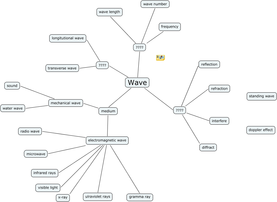 This Concept Map has information related to: Kawin_wave (draft), electromagnetic wave infrared rays, ???? refraction, medium electromagnetic wave, Wave ????, frequency ????, electromagnetic wave radio wave, mechanical wave sound, ???? wave length, electromagnetic wave microwave, ???? wave number