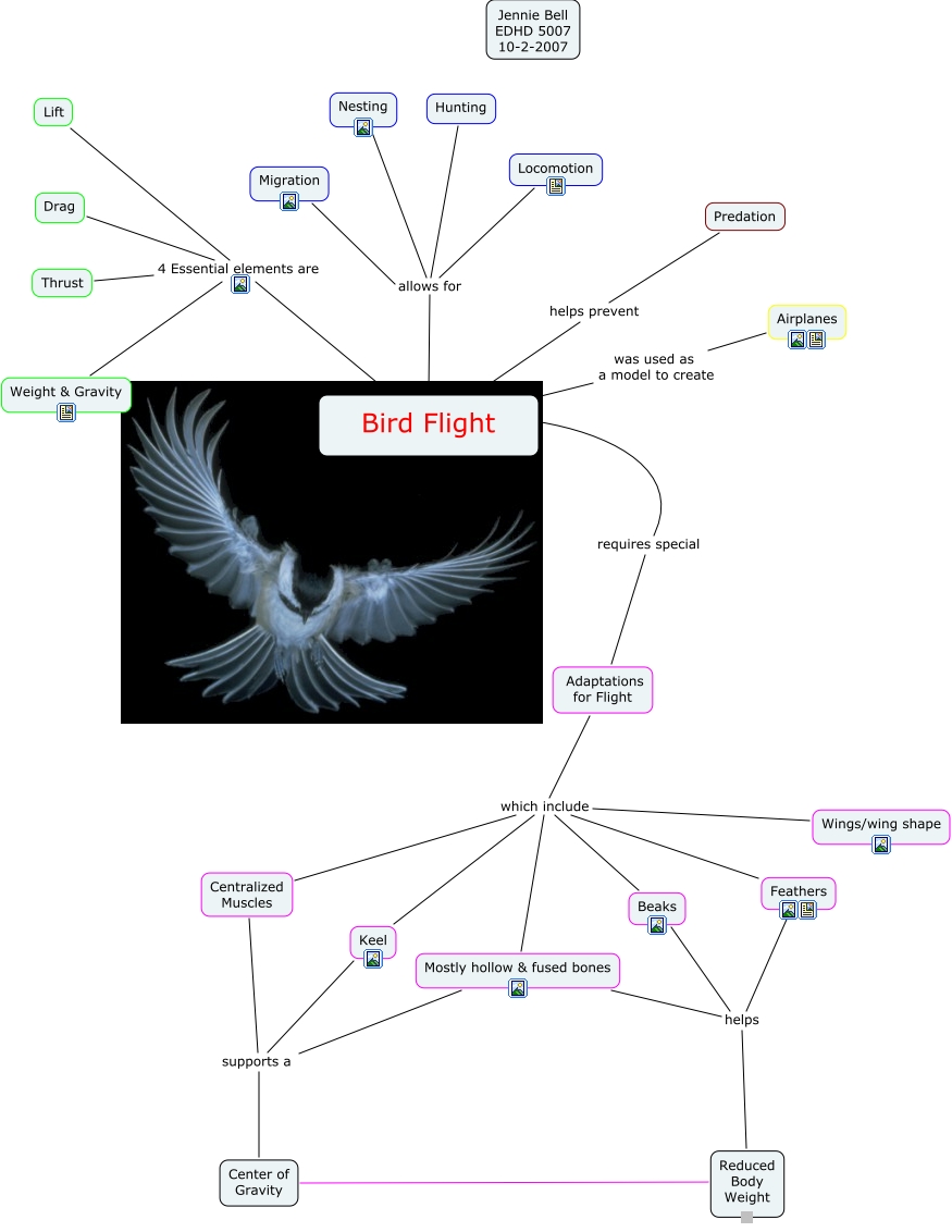 This Concept Map has information related to: Jennie Bell- Bird Flight, Beaks which include Keel, Adaptations for Flight which include Keel, Migration allows for Locomotion, Wings/wing shape which include Keel, Mostly hollow & fused bones which include Keel, Bird Flight requires special Adaptations for Flight, Bird Flight allows for Locomotion, Bird Flight 4 Essential elements are Drag, Centralized Muscles supports a Keel, Center of Gravity Reduced Body Weight