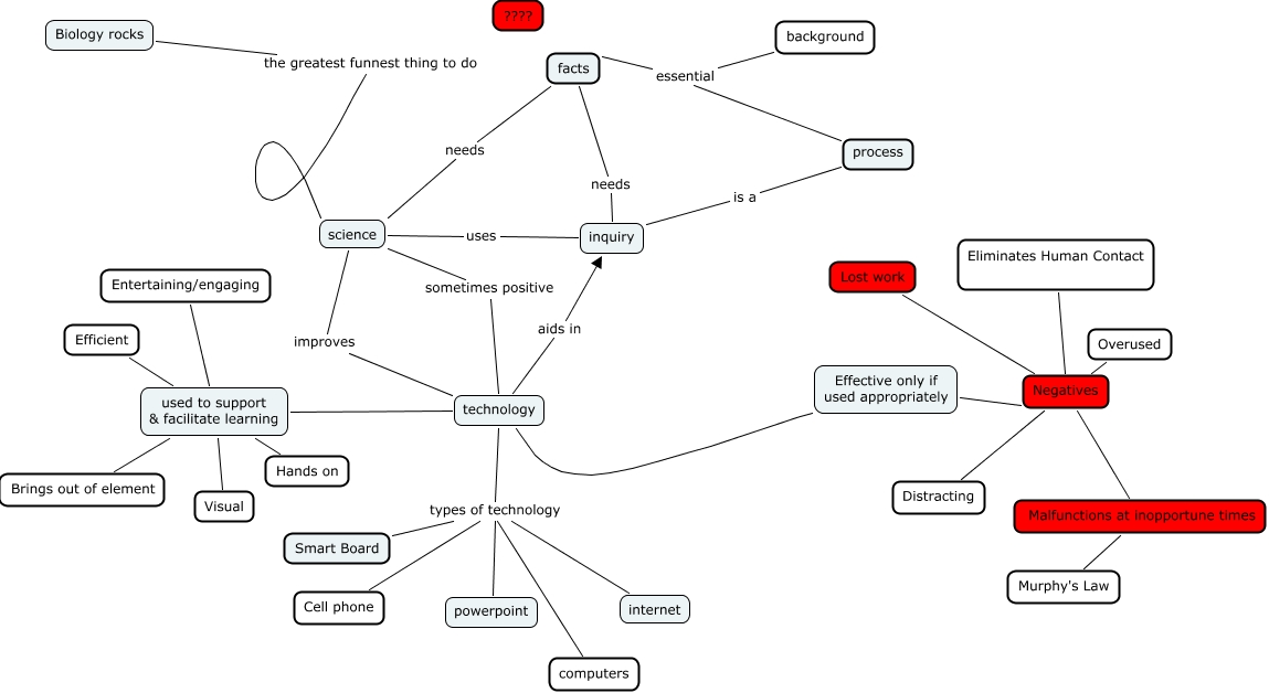 This Concept Map has information related to: sci teck clean up, used to support & facilitate learning technology, powerpoint types of technology Cell phone, Lost work Negatives, Brings out of element used to support & facilitate learning, internet types of technology Cell phone, facts needs inquiry, used to support & facilitate learning Hands on, computers types of technology technology, computers types of technology Cell phone, computers types of technology Smart Board