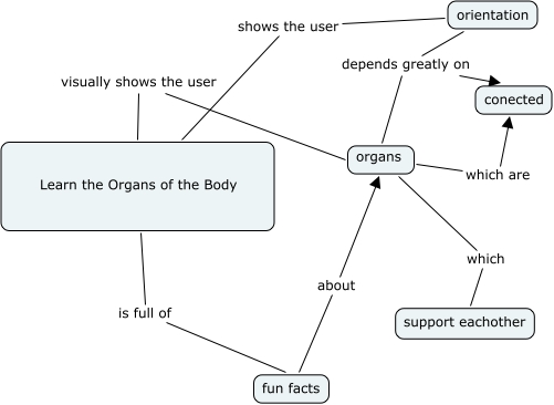 This Concept Map has information related to: josh's organs, Learn the Organs of the Body is full of fun facts, organs which are conected, orientation depends greatly on conected, Learn the Organs of the Body visually shows the user organs, orientation shows the user Learn the Organs of the Body, orientation depends greatly on organs, organs which support eachother, fun facts about organs