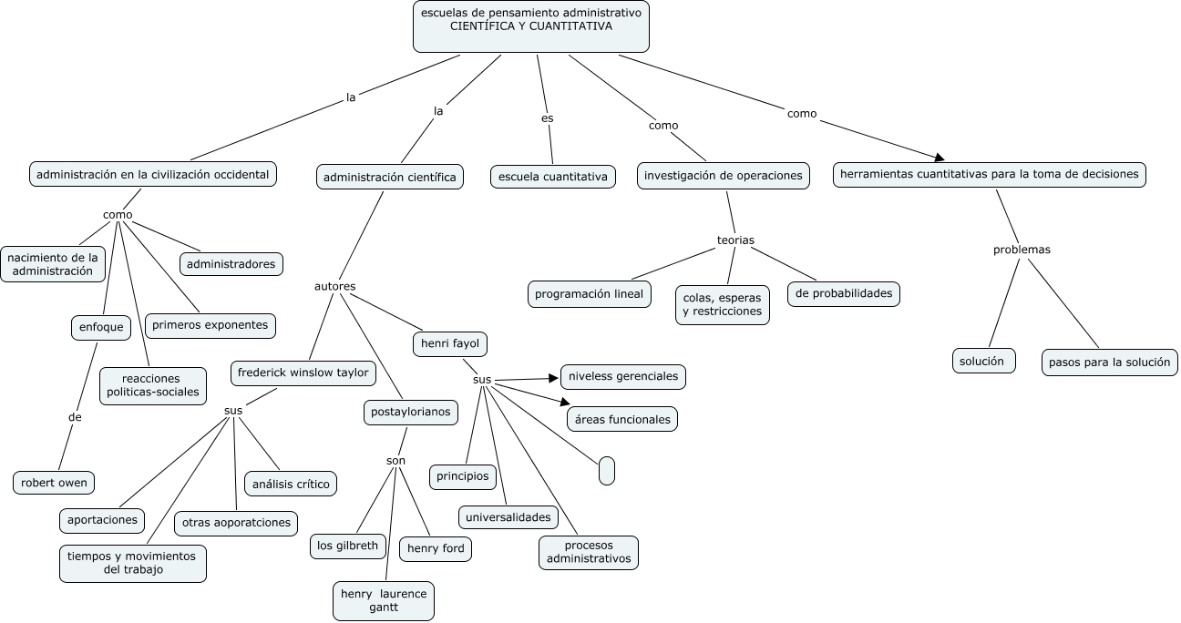 Este Cmap, tiene información relacionada con: unidad 2 escuelas de pensamiento administrativo, administración científica autores henri fayol, henri fayol sus niveless gerenciales, administración científica autores frederick winslow taylor, postaylorianos son henry ford, henri fayol sus universalidades, administración científica autores postaylorianos, henri fayol sus, investigación de operaciones teorias colas, esperas y restricciones, enfoque de robert owen, henri fayol sus principios, escuelas de pensamiento administrativo CIENTÍFICA Y CUANTITATIVA como herramientas cuantitativas para la toma de decisiones, escuelas de pensamiento administrativo CIENTÍFICA Y CUANTITATIVA la administración científica, administración en la civilización occidental como reacciones politicas-sociales, administración en la civilización occidental como primeros exponentes, administración en la civilización occidental como administradores, henri fayol sus áreas funcionales, escuelas de pensamiento administrativo CIENTÍFICA Y CUANTITATIVA como investigación de operaciones, frederick winslow taylor sus tiempos y movimientos del trabajo, frederick winslow taylor sus aportaciones, escuelas de pensamiento administrativo CIENTÍFICA Y CUANTITATIVA la administración en la civilización occidental
