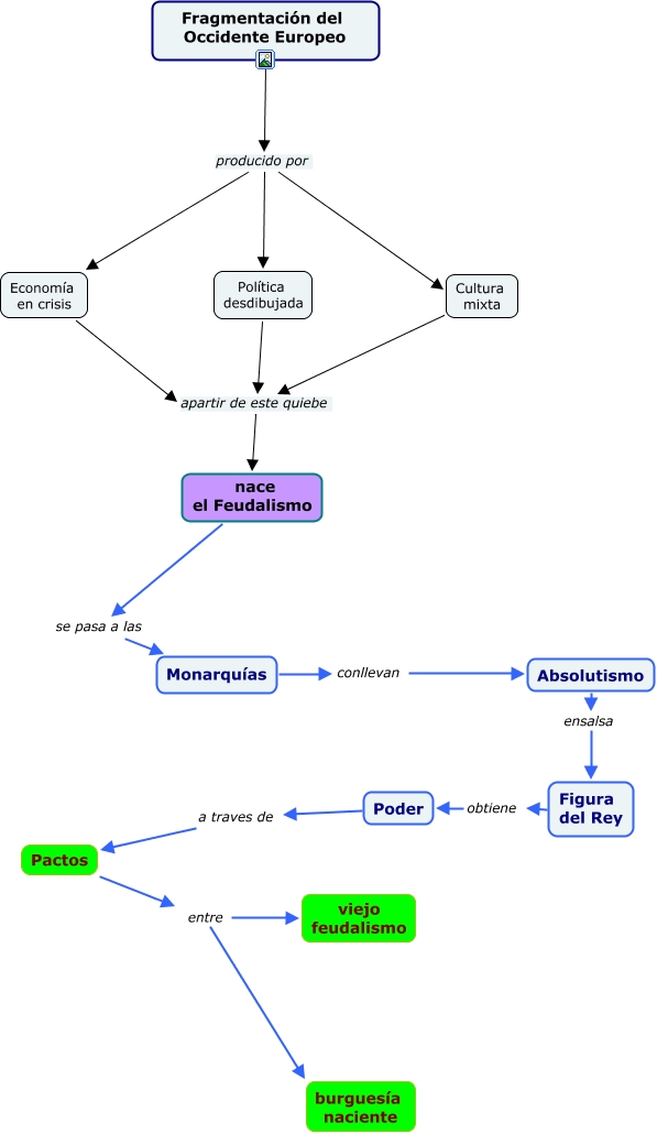 Este Cmap, tiene información relacionada con: imperio romano, Absolutismo ensalsa Figura del Rey, Política desdibujada apartir de este quiebe nace el Feudalismo, Pactos entre burguesía naciente, Fragmentación del Occidente Europeo producido por Cultura mixta, Fragmentación del Occidente Europeo producido por Política desdibujada, Poder a traves de Pactos, Monarquías conllevan Absolutismo, Economía en crisis apartir de este quiebe nace el Feudalismo, nace el Feudalismo se pasa a las Monarquías, Cultura mixta apartir de este quiebe nace el Feudalismo, Fragmentación del Occidente Europeo producido por Economía en crisis, Pactos entre viejo feudalismo, Figura del Rey obtiene Poder