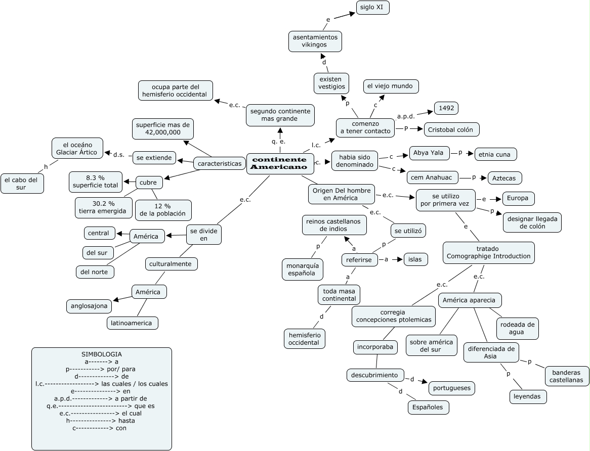 Este Cmap, tiene información relacionada con: red semantica del continente americano 1, América ???? del sur, el oceáno Glaciar Ártico h el cabo del sur, habia sido denominado c Abya Yala, culturalmente ???? América, caracteristicas ???? cubre, tratado Comographige Introduction e.c. América aparecia, cubre ???? 30.2 % tierra emergida, América ???? central, continente Americano q. e. segundo continente mas grande, continente Americano e.c. se divide en, América aparecia ???? rodeada de agua, reinos castellanos de indios p monarquía española, diferenciada de Asia p banderas castellanas, caracteristicas ???? superficie mas de 42,000,000, se utilizo por primera vez e tratado Comographige Introduction, corregia concepciones ptolemicas ???? incorporaba, cem Anahuac p Aztecas, continente Americano ???? Origen Del hombre en América, América ???? anglosajona, referirse a reinos castellanos de indios